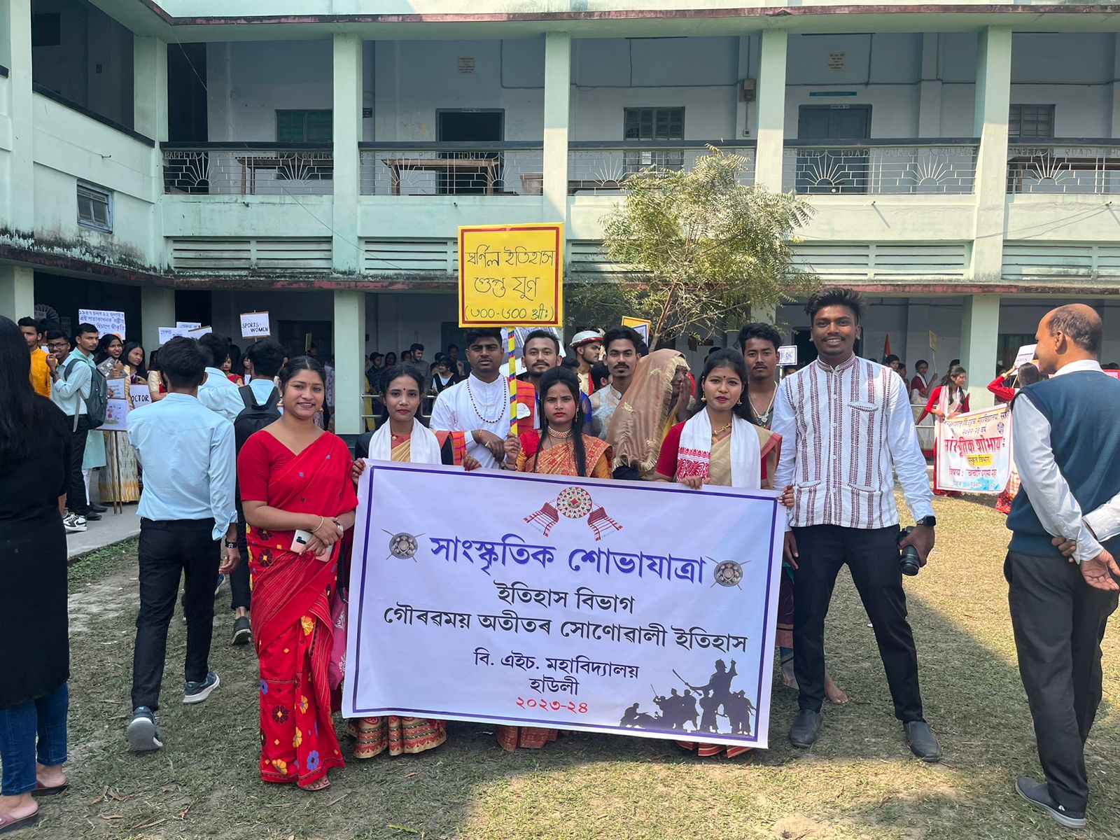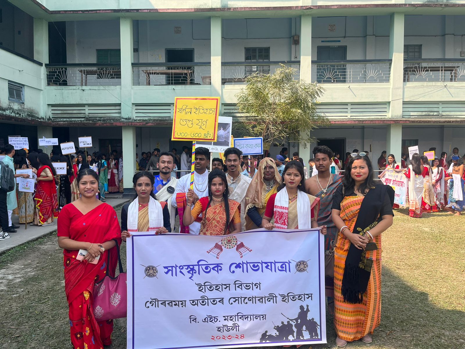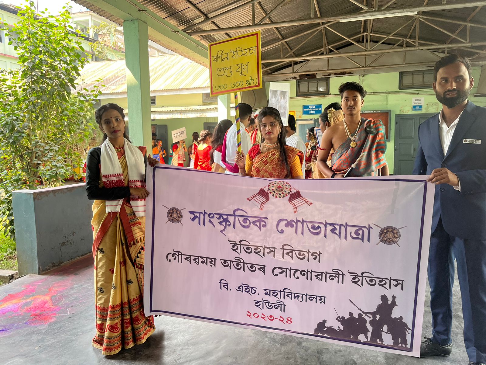 Description: Participation at the cultural rally as organised by B H College Student Union on 17th Feb 2023 representing the historical themes of Anciant and Medieval Indian history .Equally represented Sati Jaymati , the warhero of Assam Lachit Barphukan who defeated the imperial Mughals and also represented Akbar and only Medieval female ruler Rezia Sultana. For representation of Ancient Indian History the Gupta Dynastys Samudragupta Indian Nepoleon, famous geographer Harisena and the composer of Allahabad Prasahti