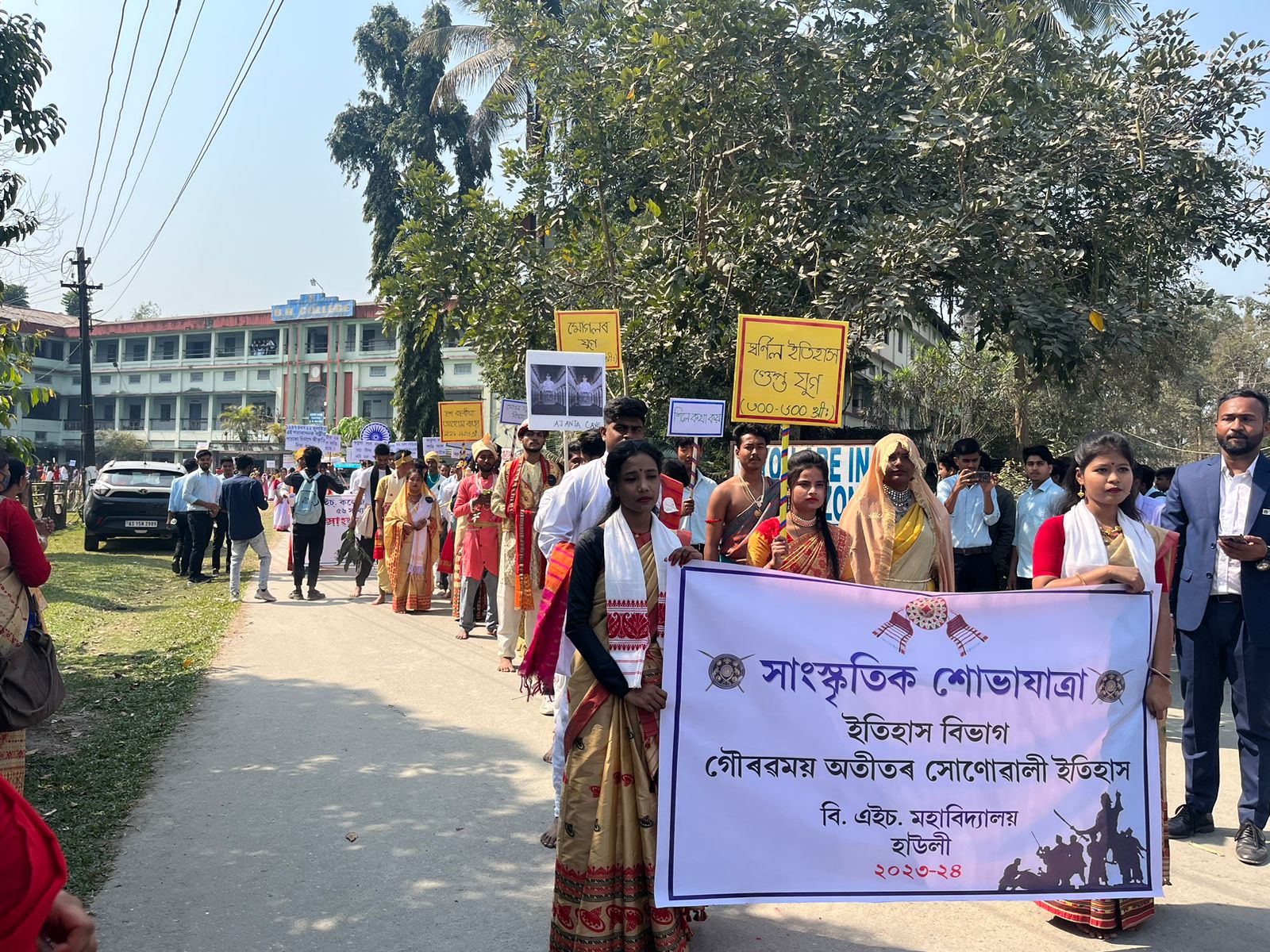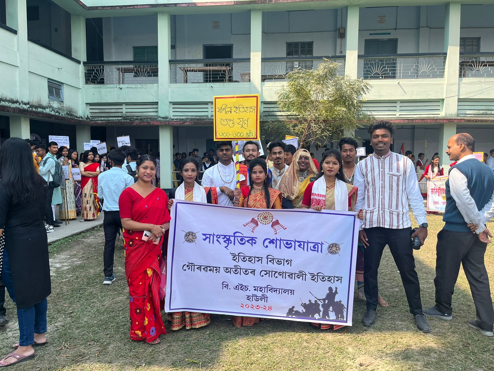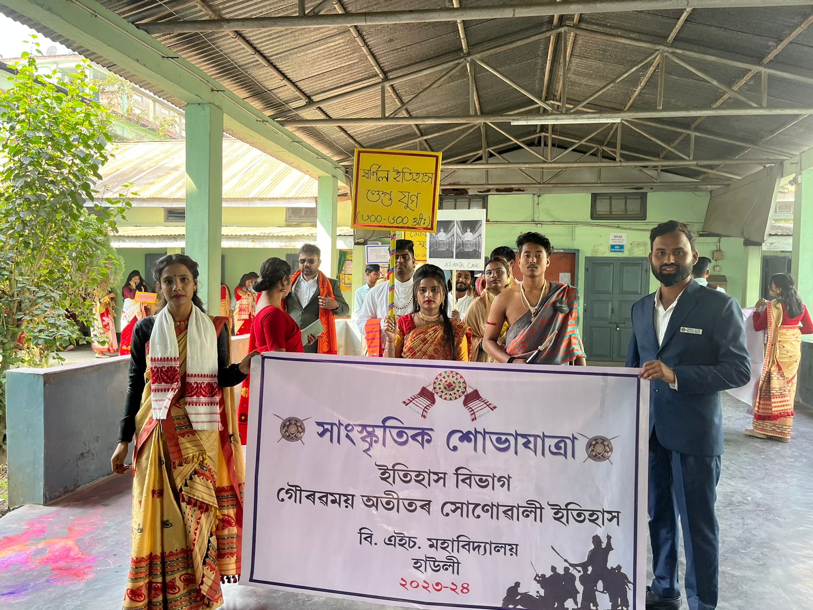 Description: Participation at the cultural rally as organised by B H College Student Union on 17th Feb 2023 representing the historical themes of Anciant and Medieval Indian history .Equally represented Sati Jaymati , the warhero of Assam Lachit Barphukan who defeated the imperial Mughals and also represented Akbar and only Medieval female ruler Rezia Sultana. For representation of Ancient Indian History the Gupta Dynastys Samudragupta Indian Nepoleon, famous geographer Harisena and the composer of Allahabad Prasahti