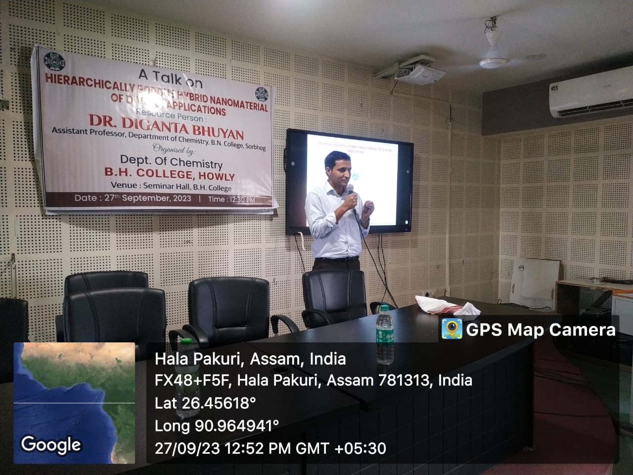 Description: A seminar talk on "Hierarchically Porous Hybrid Nano Material of Diverse Applications" was delivered by Dr. Diganta Bhuyan, Asstt. Prof., Department of Chemistry, Barnagar College, Sorbhog.