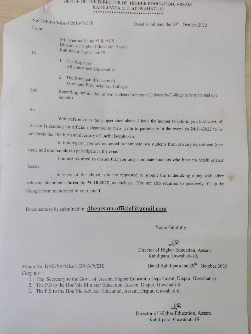Description: Participation of Dharmita Nath and Meijing Ramchiary of 6th Sem History Deptt B H COLLEGE HOWLY participated at the 400 Years Celebration of Lachit Barphukan Birth Anniversary at New Delhi sponsored by Govt of Assam