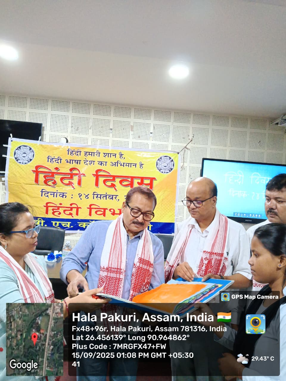 Description: This year Hindi Department observes Hindi Day (14th September) to inculcate values like self-respect, National integrity, social equality etc. in this occasion Department organizes various competitions and programmes in the college. Students in large numbers participate and mark their respect towards the nation and national language. Students are given the opportunity to organize and participate in a variety of co-curricular competitions like Essay writing, Extempore Speech, Painting, Products made from waste materials etc. Winners are given away the prizes on valedictory Day. Dr. Rajkumari Das, HoD of the department presided the meeting and gave introductory speech. Dr. B.C. Pathak, Principal, B.H. College, Dr. Sultan Ali Ahmed,Associate Professor & HoD, deptt.of English,Mr. Nayanmoni Hazarika,Associate Professor & HoD, deptt.of History, & Mr. Imran Hussain, Assistant Professor,deptt. of History were invited as chief guest to deliver lecture on the significance of the official language. Faculty members of the department appreciate the talents of students with gifts. Senior students are given the opportunity to conduct the competitions and organize the Hindi function and they prove their leadership qualities and organizing skills.