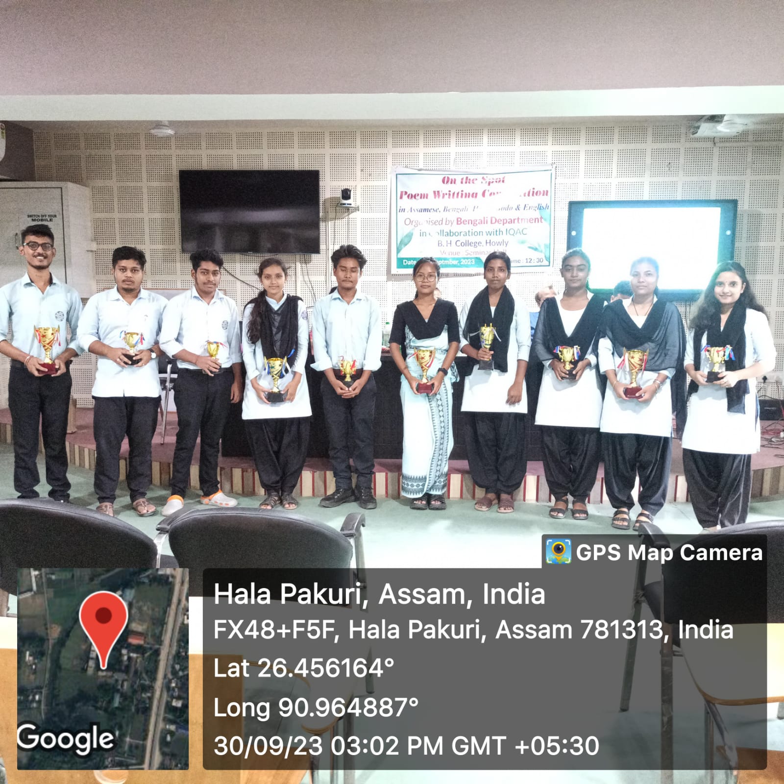 | 2023-09-30 | Self-Composed Poem Writing Competition in five languages | A Self Composed Poem writing Competition in five languages organized by the Dept of Bengali in the Seminar Hall. The said competition was held in collaboration with IQAC, B.H. College Howly. The programme was inaugurated by the Chief guest Dr. Bhushan Chandra Pathak, Principal, B.H. College, Howly. Dr. Debabrata Dutta HoD of Bengali Dept. was the in charge of the competition. The Judges of the programme were Dr. Debabrata Dutta of Bengali Dept. Dr. Dipmoni Das of English Dept. Dr. Dipali Kherketary of Bodo Dept. Dr. Rajkumari Das of Hindi Dept. and Dr. Prashanta Rabha of Assamese Dept. In the end of the competition, the selected participants were honored with certificate and trophy. | |