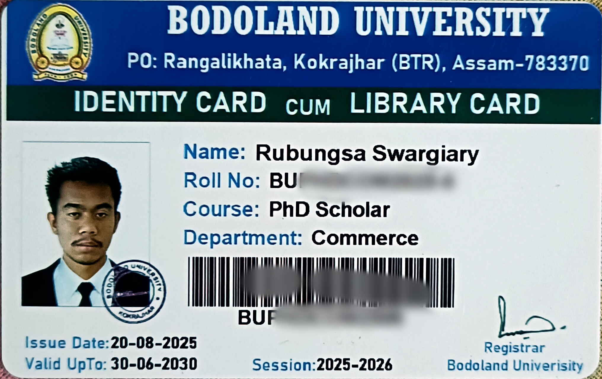 | 2025 | Rubungsa Swargiary | BBA, BH College, GU | 2021 | Bodoland University | PhD | View File |