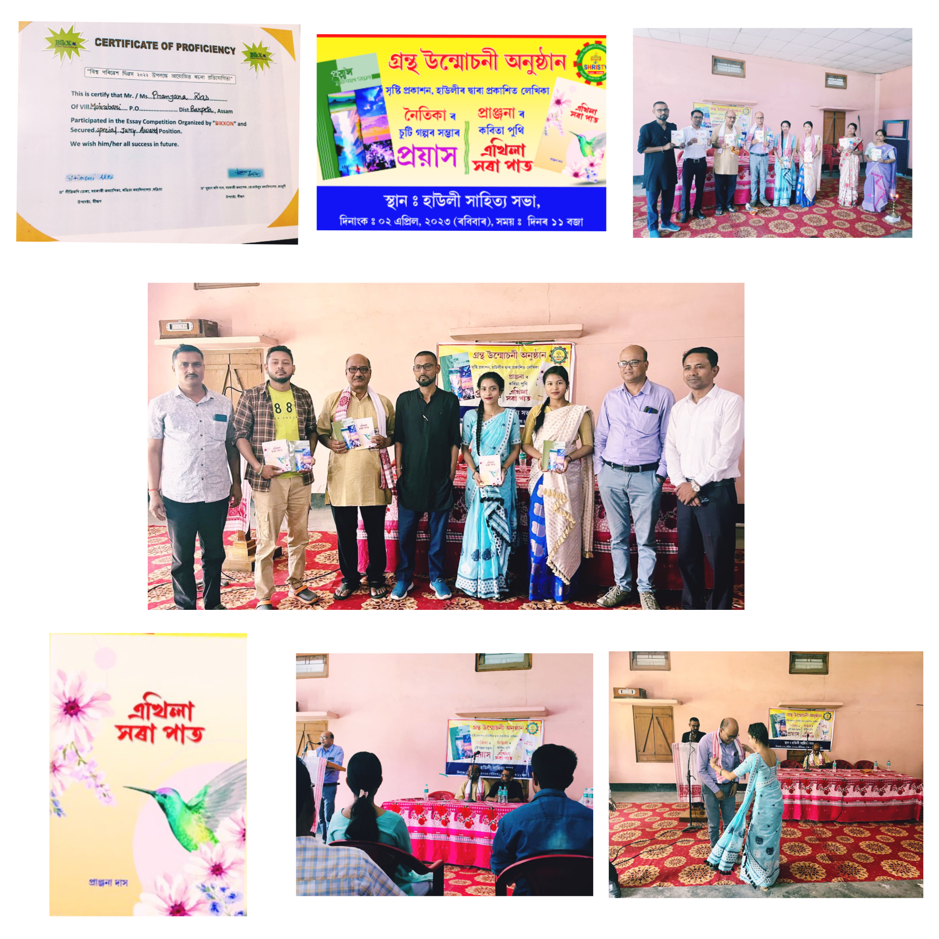 | The student of Assamese department Pranjana Das has published her book of poems named "AKHILA XORA PAAT" on 2 April, 2023. She has got "SPECIAL JURY AWARD" in eassy competition organized by BIKXON | 2023-05-29 | View File |