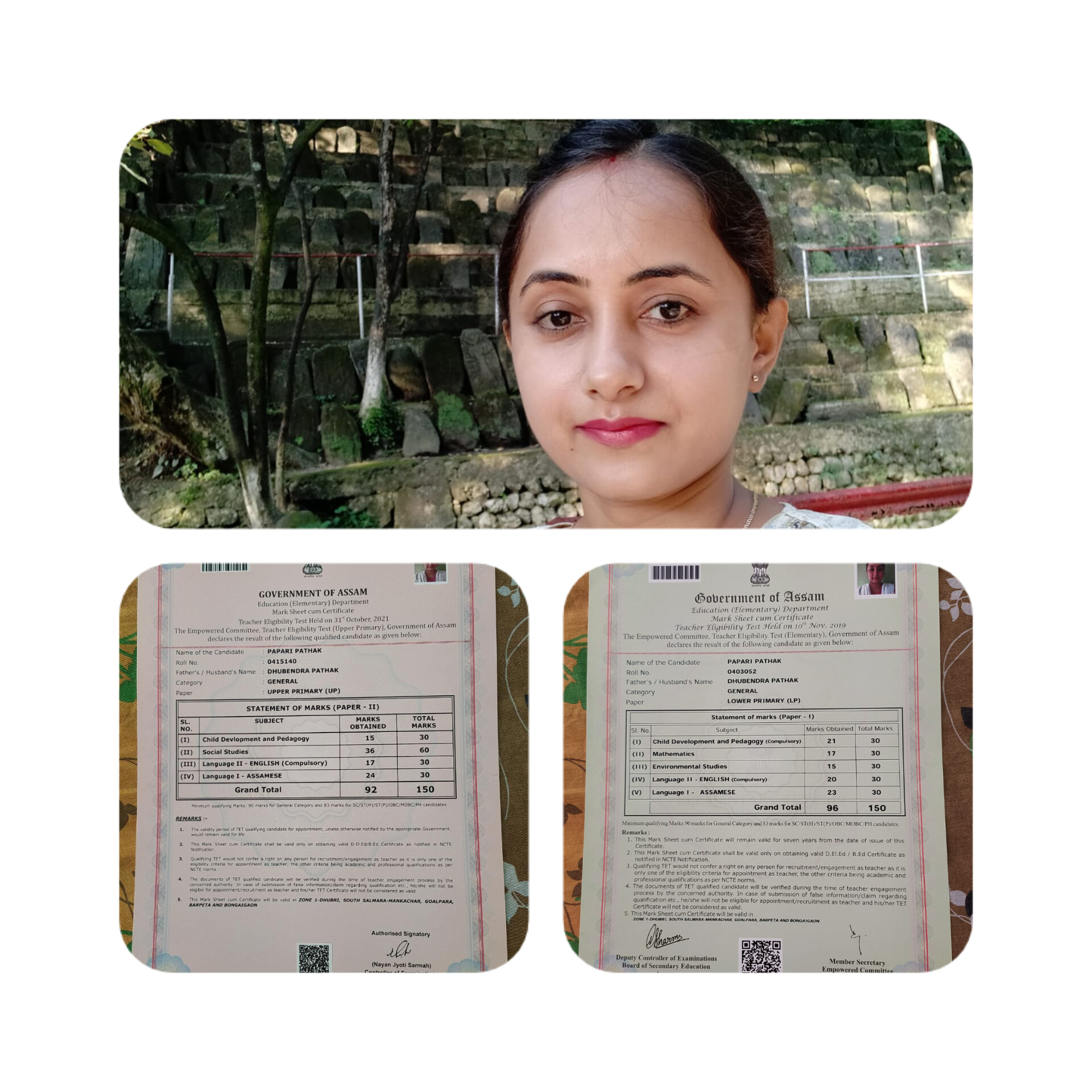 | 20 | Papari Pathak. | 2012 | Papari Pathak is the first student to receive first class in Assamese Department. She is also qualified Teacher's Eligibility Test. | ![]() |