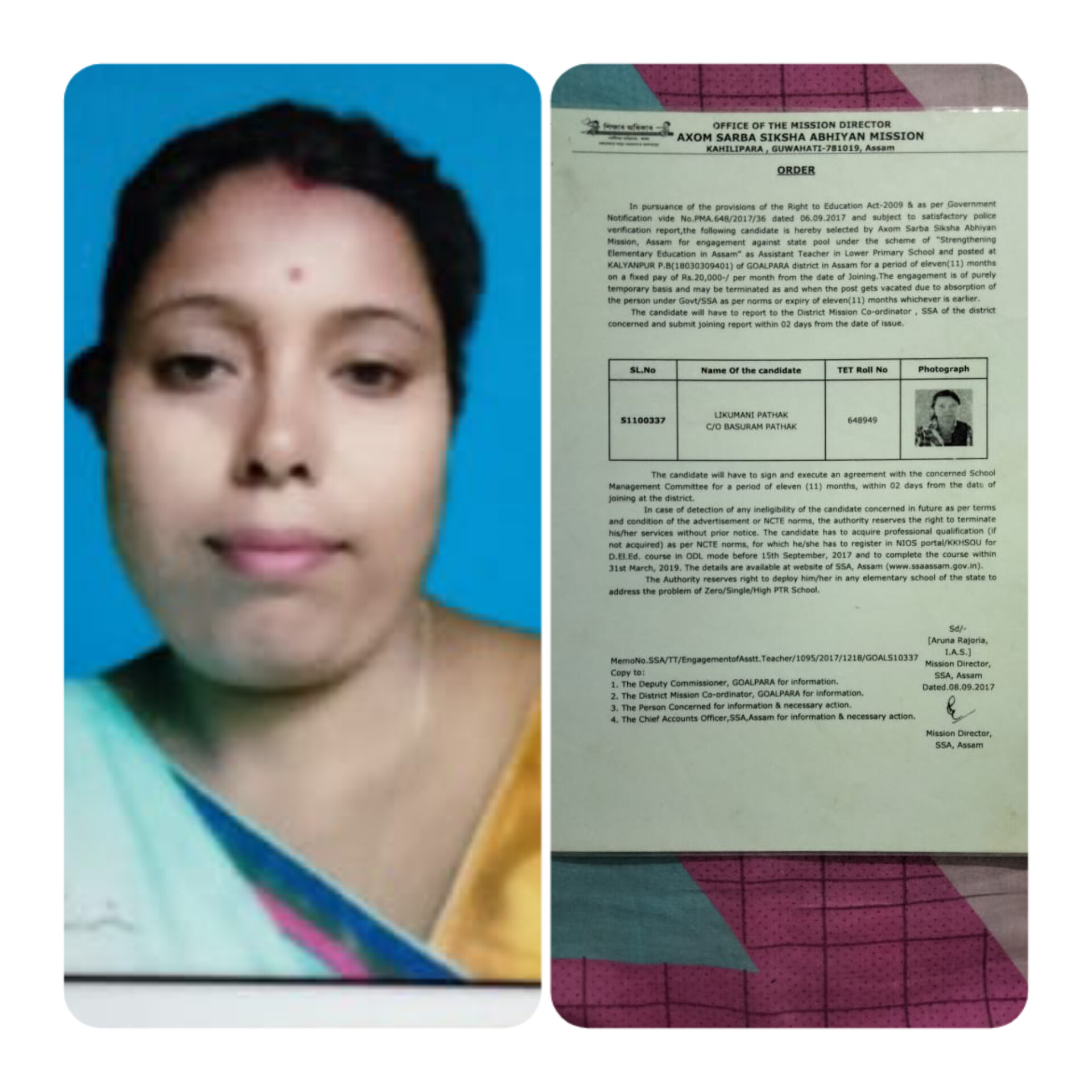 | 14 | Niva Das. | 2009 | Assistant Teacher, Govt.Lower Primary School under Barpeta District. | ![]() |