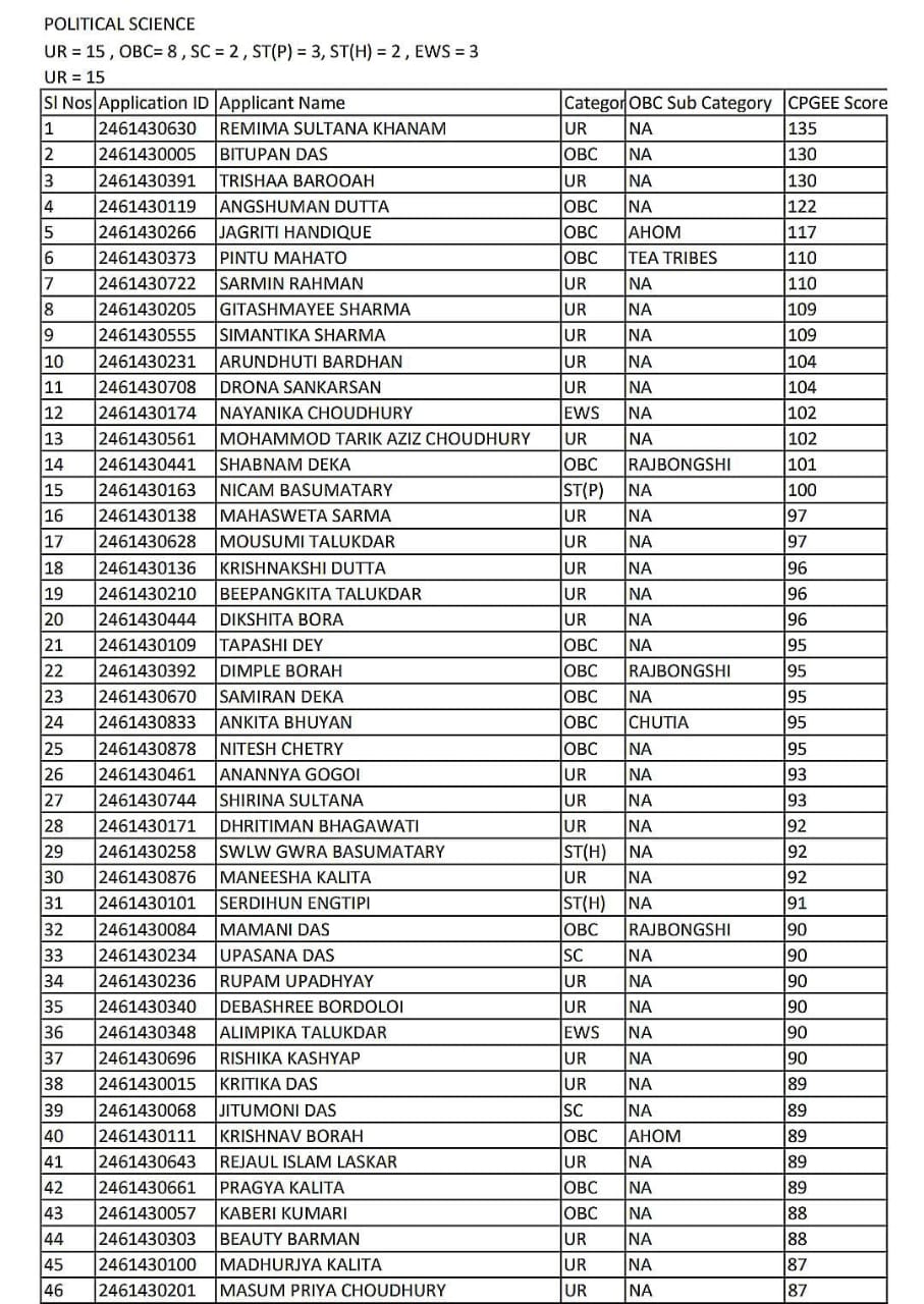 | 2022 | Kakuli Deka | B. A in Political Science | 2022 | Barnagar College | Master of Arts in Political Science | View File |