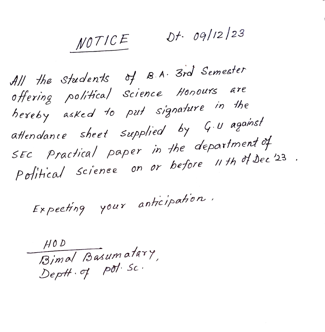 | Three (3) Alumni of the Department of Political Science have cleared NET (National Eligibility Test). | 2024-09-23 | View File |