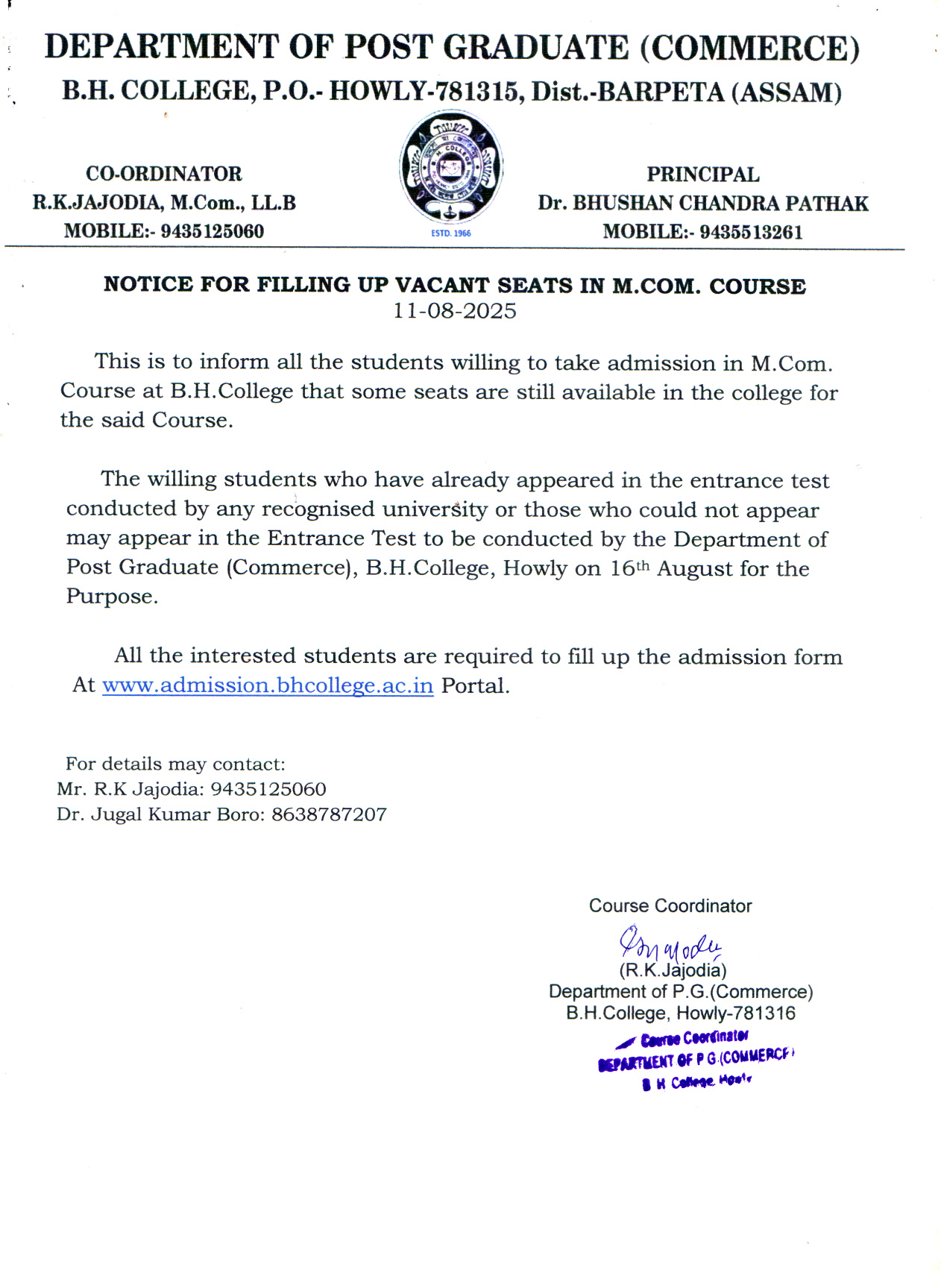 2025-08-12 - Notice for filling up vacant seats in M.COM. 1st Semester for the session 2025-26 View