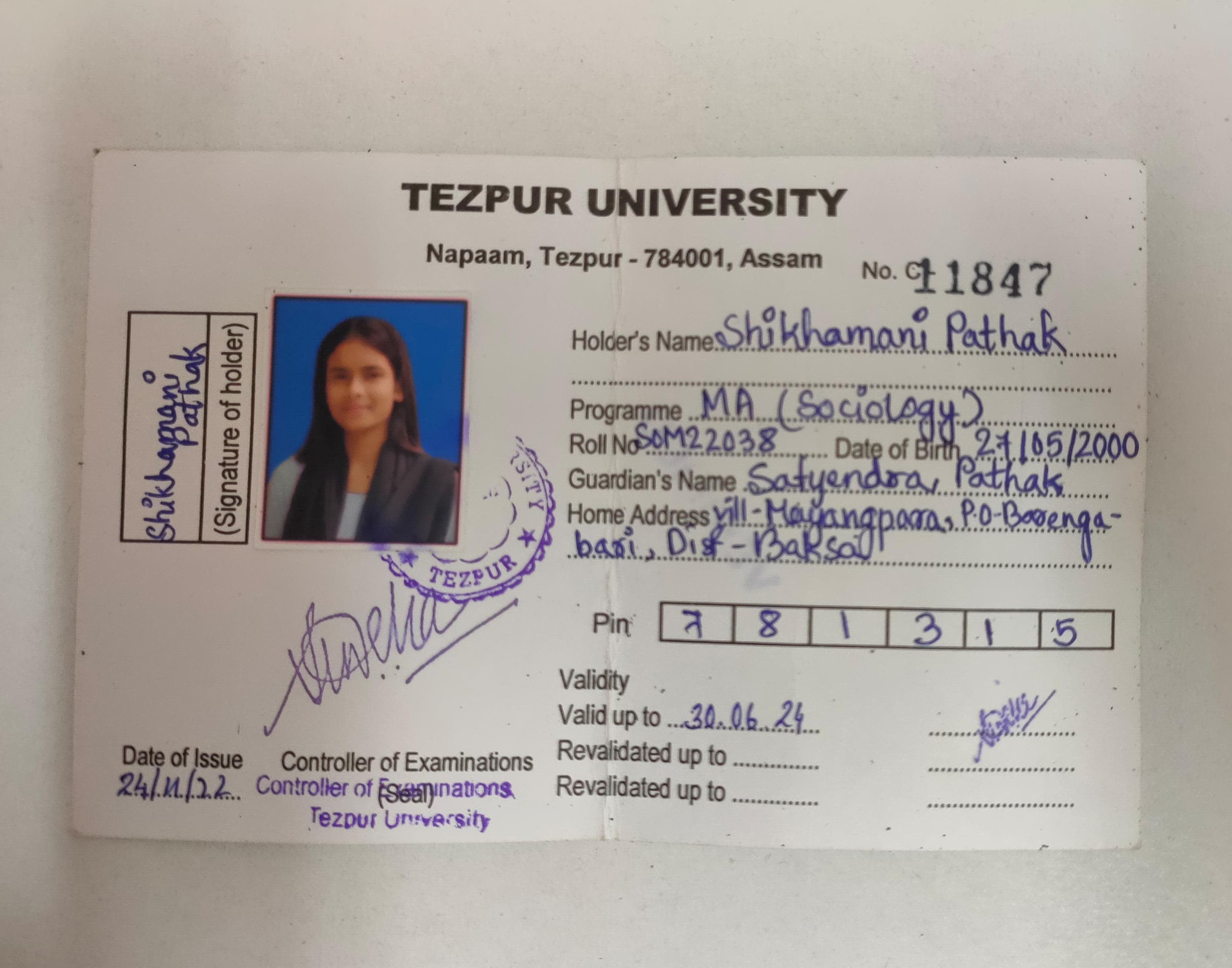 778 | POLITICAL SCIENCE | 2022 | Sikhamoni pathok | B. A in Political Science | 2022 | Tezpur University | M. A. in Sociology | View File |