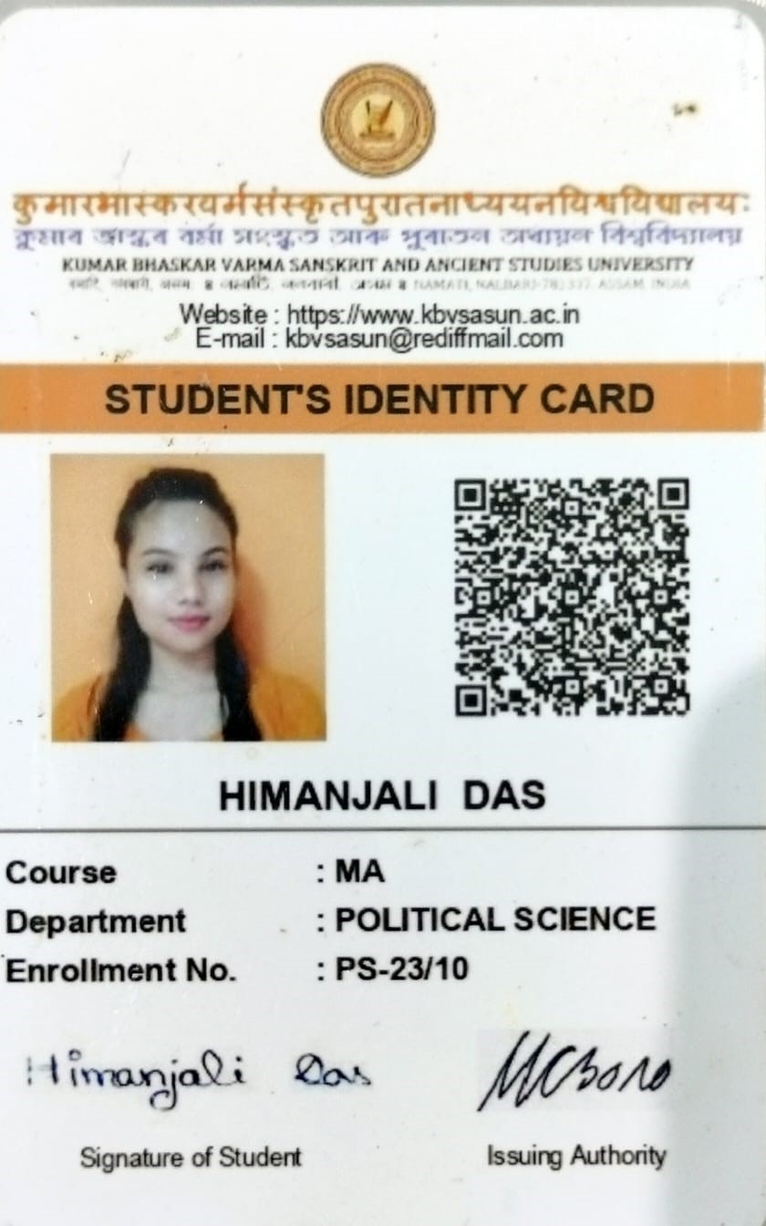798 | POLITICAL SCIENCE | 2023 | Himanjali Das | B.A in Political Science | 2023 | Kumar Bhaskar Varma Sanskrit and Ancient Studies University | M. A. in Political Science | View File |