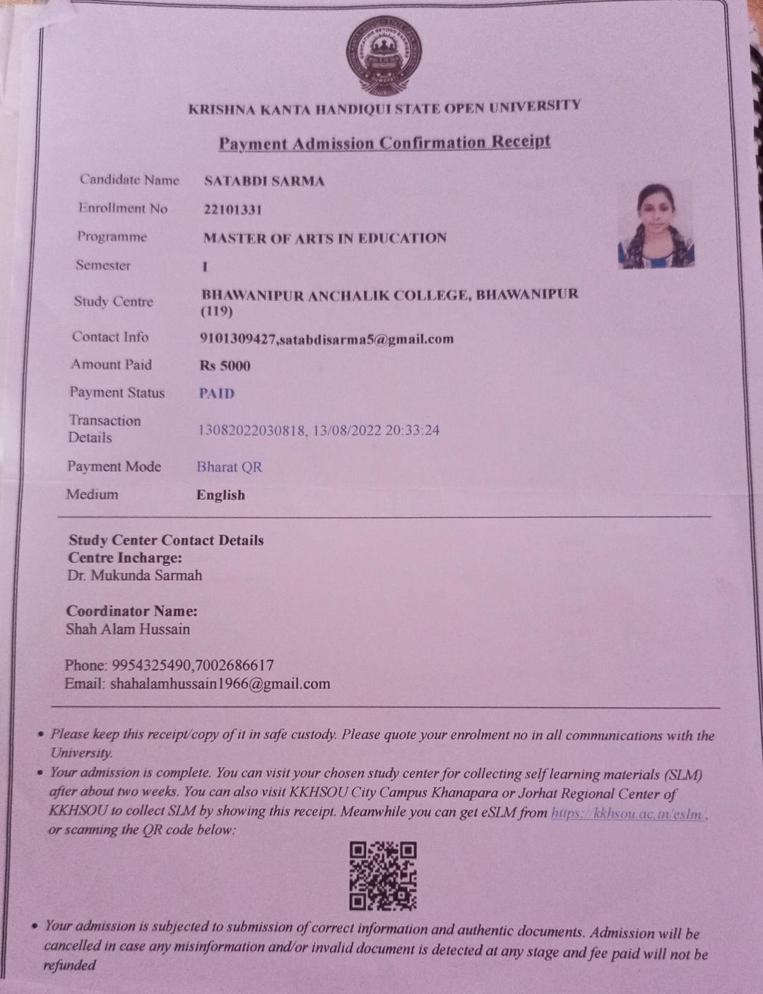 771 | SANSKRIT | 2022 | Satabdi Sarma | Sanskrit | 2019 | KKHSOU | M.A in Education | View File |