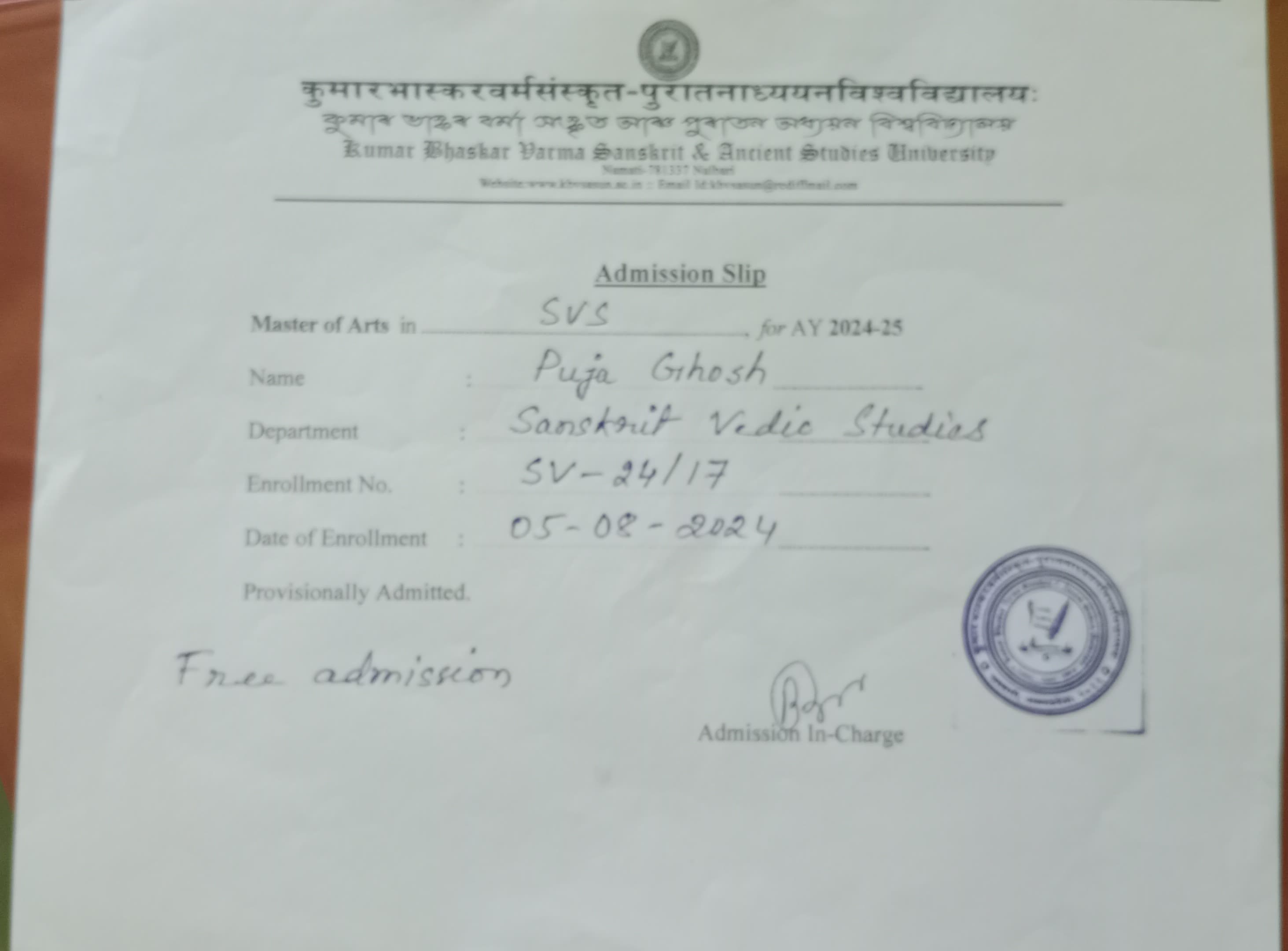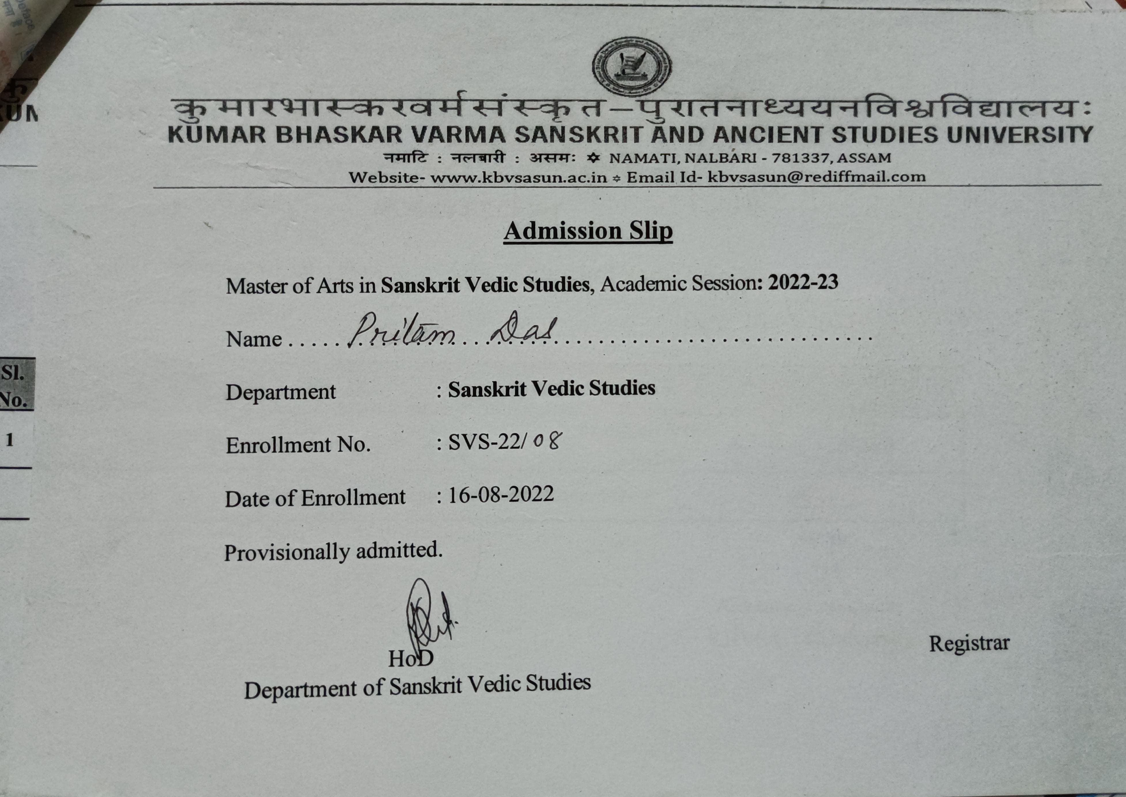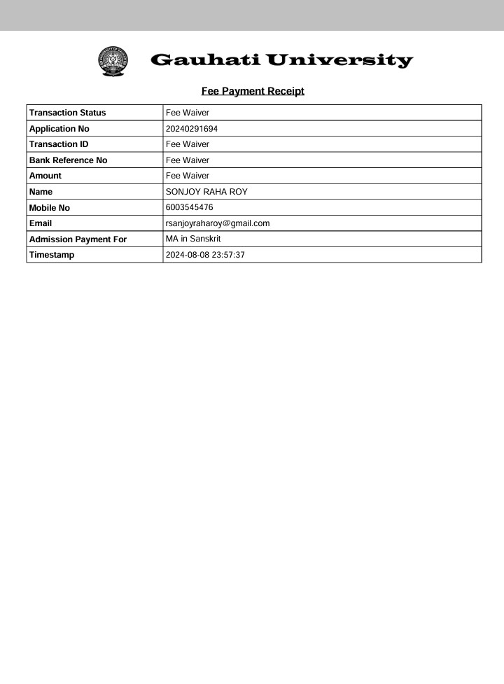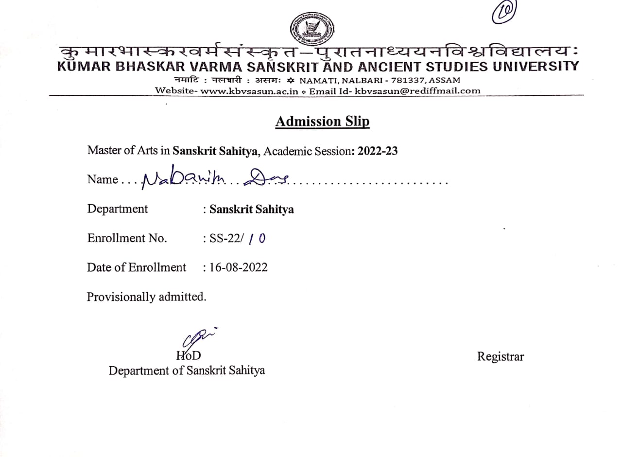 761 | SANSKRIT | 2022 | Priya Das | Sanskrit | 2022 | Gauhati University | M.A in Sanskrit | View File |