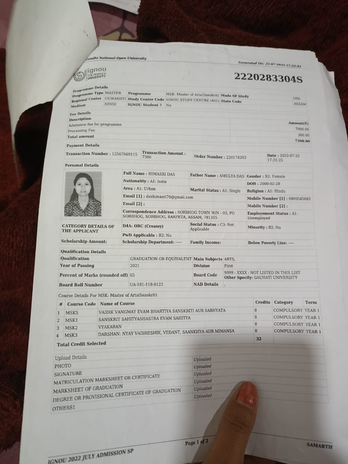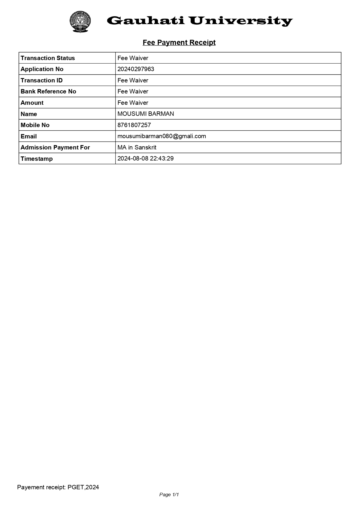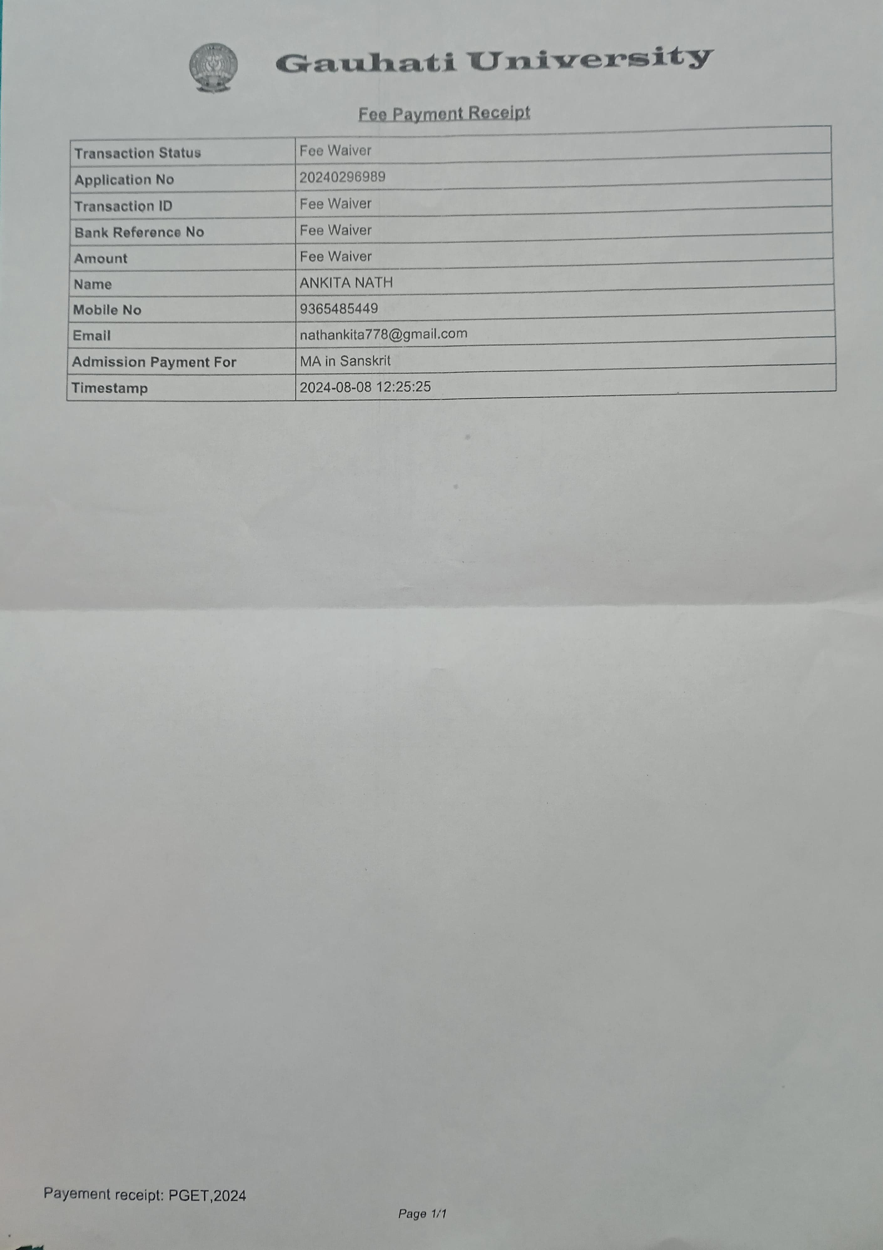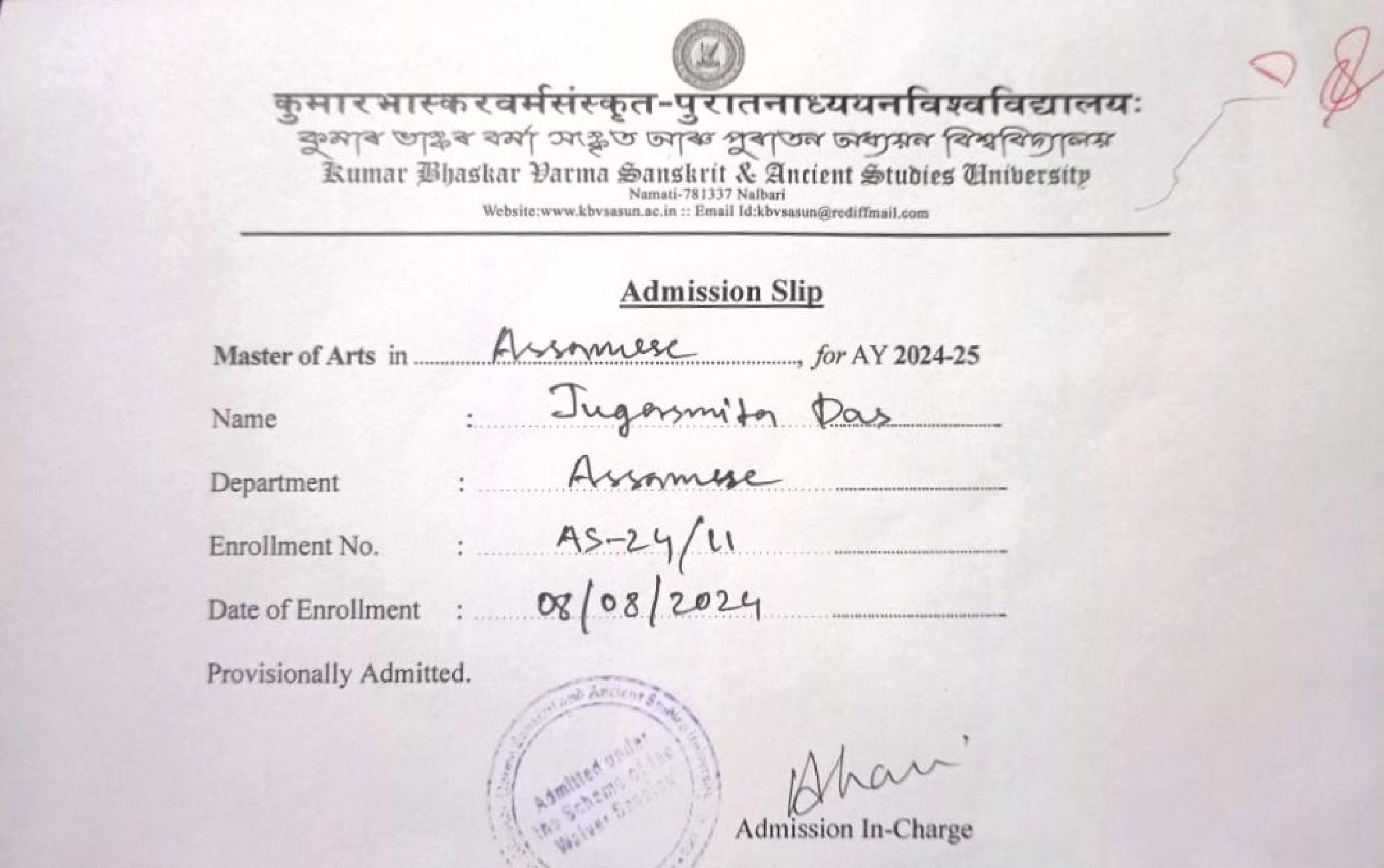 761 | SANSKRIT | 2022 | Priya Das | Sanskrit | 2022 | Gauhati University | M.A in Sanskrit | View File |