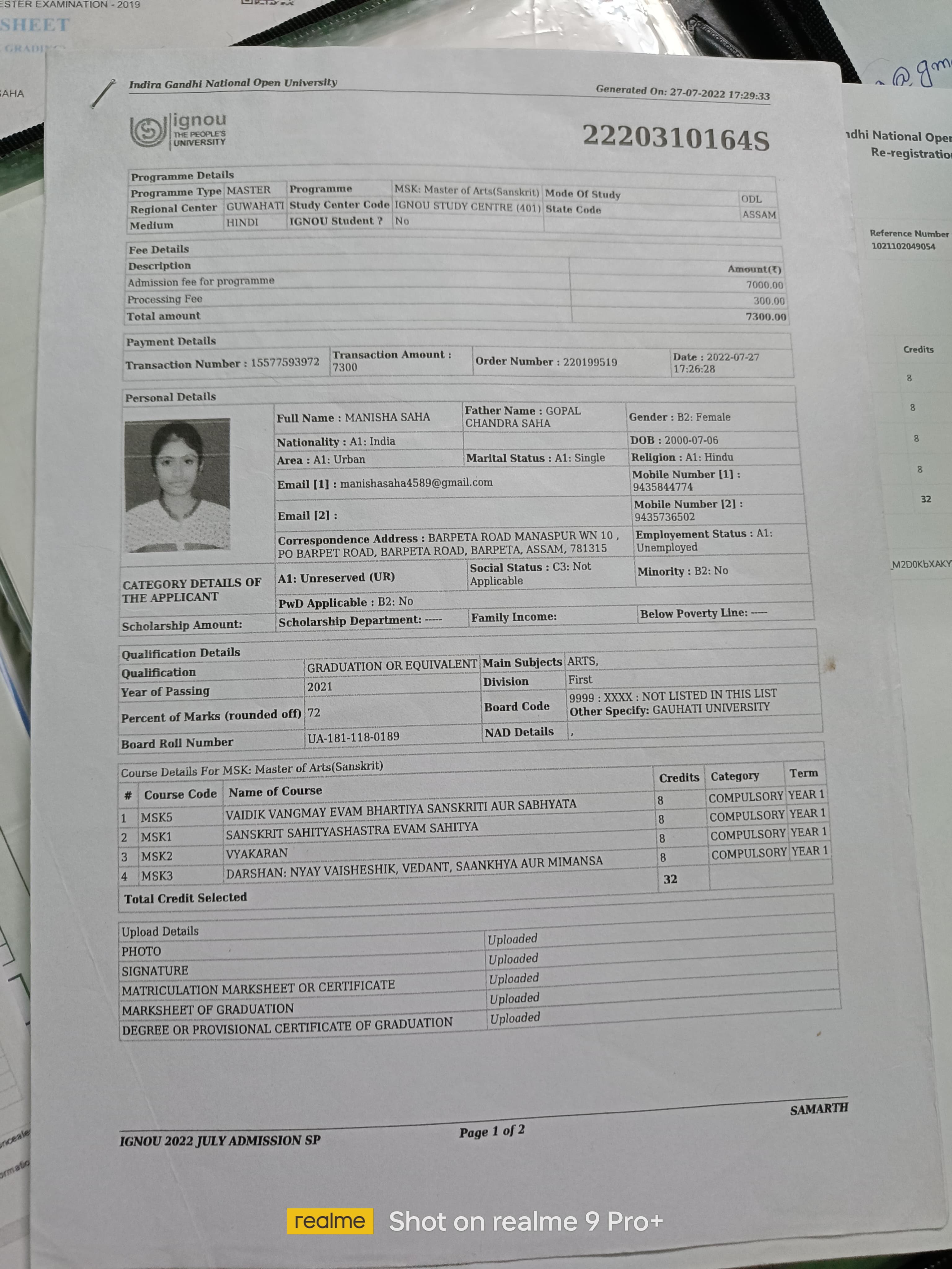 767 | SANSKRIT | 2021 | Manisha Saha | Sanskrit | 2021 | IGNOU | M.A in Sanskrit | View File |