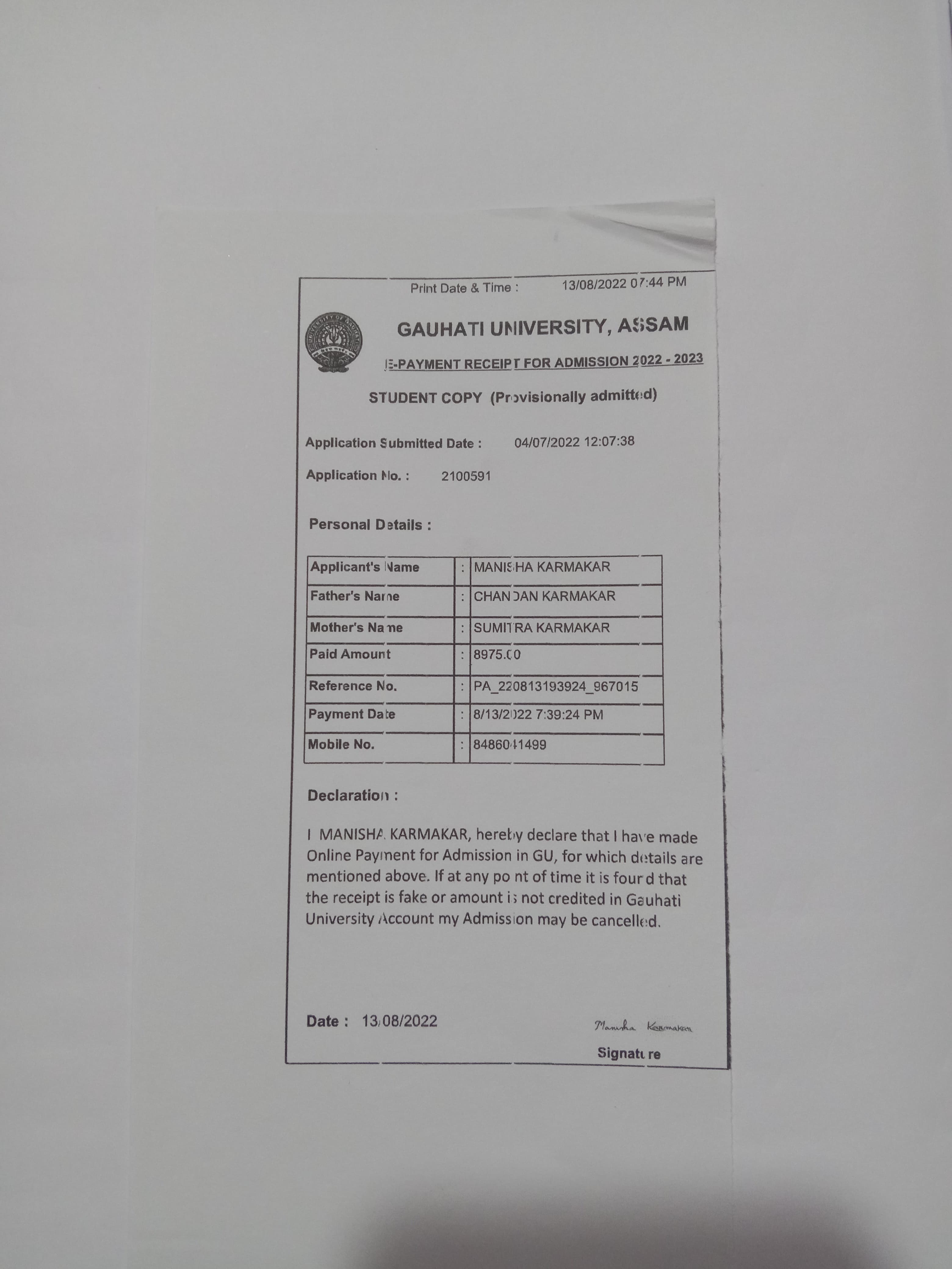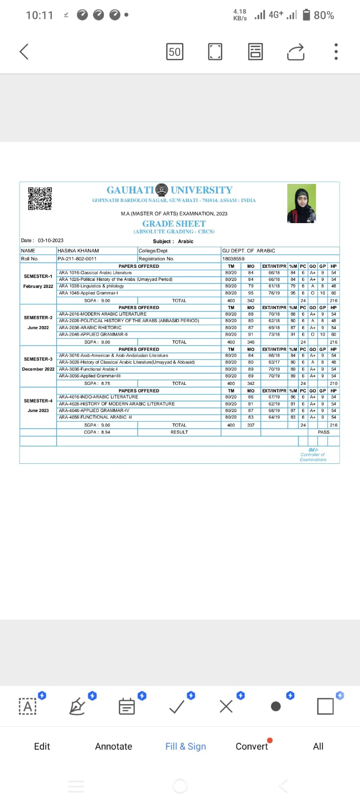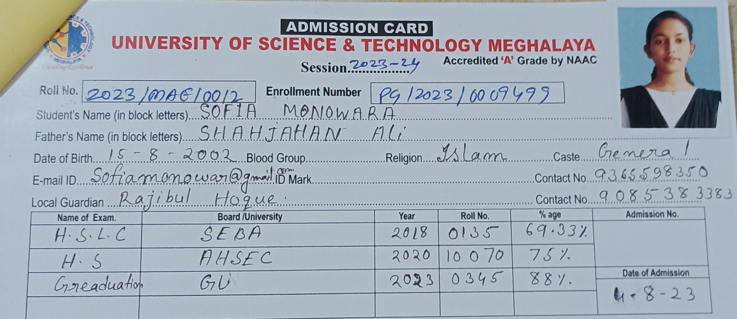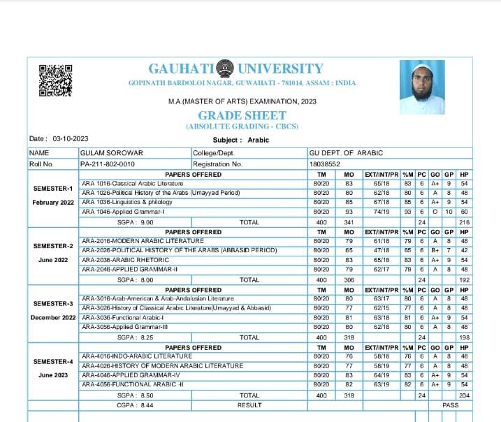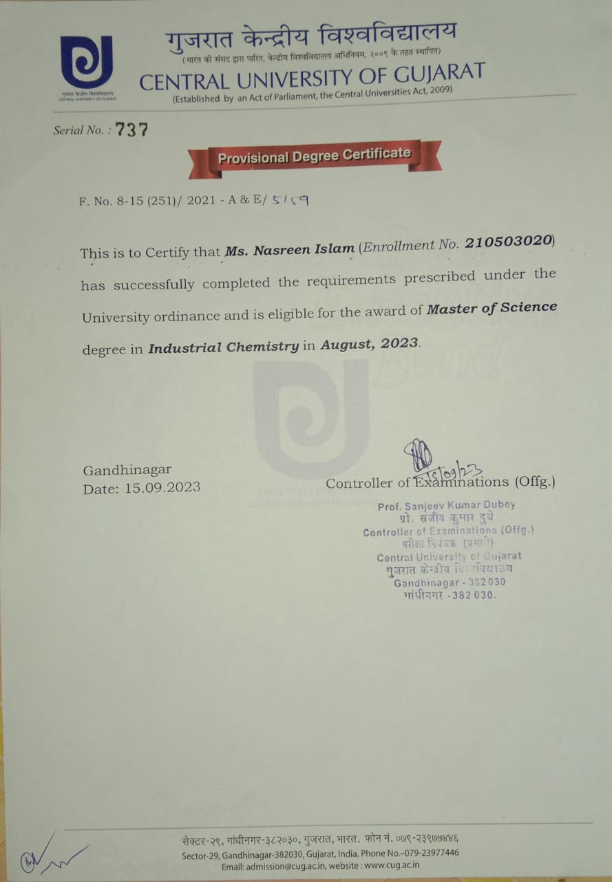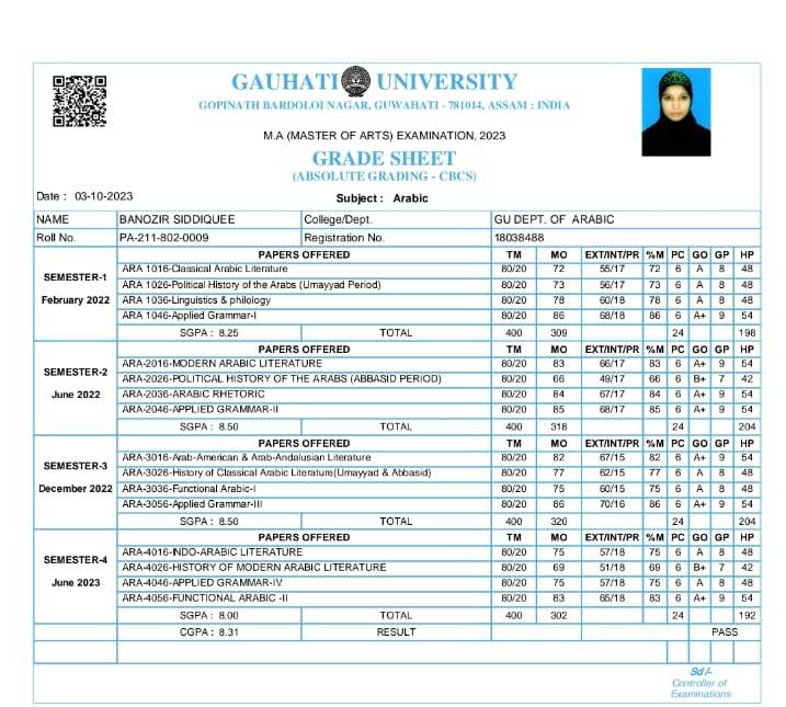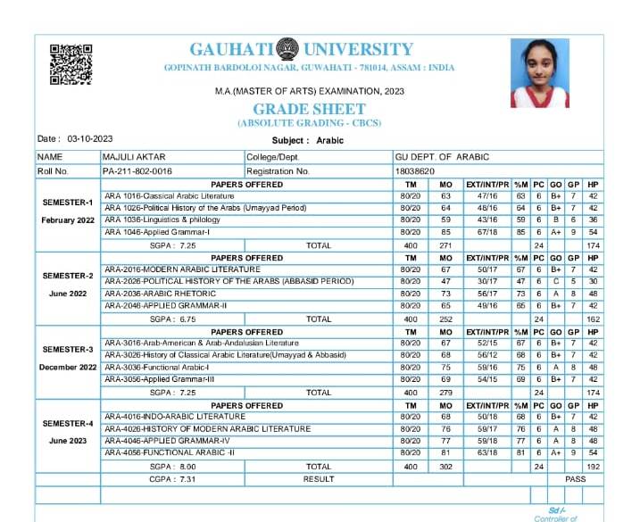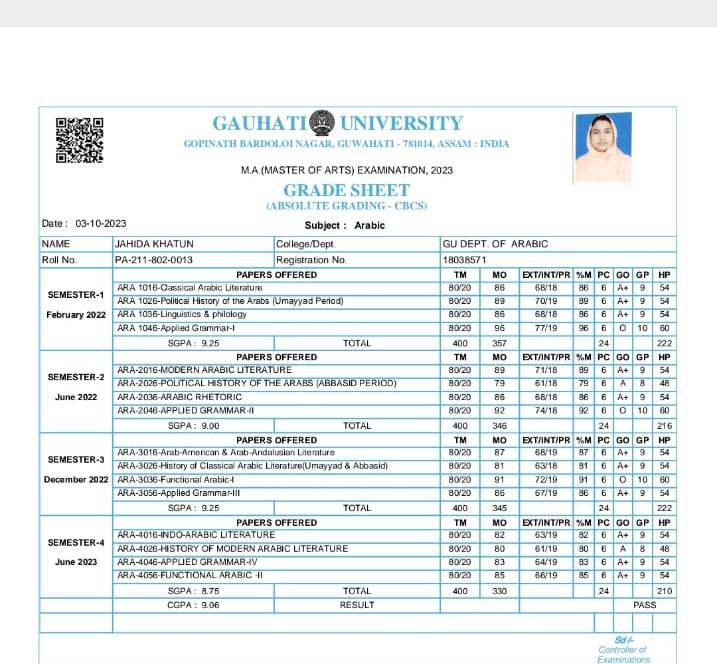 44 | MATHEMATICS | 2023 | Asifa Ahmed | B. Sc. Mathematics | 2023 | Gauhati University | M. Sc. | View File |