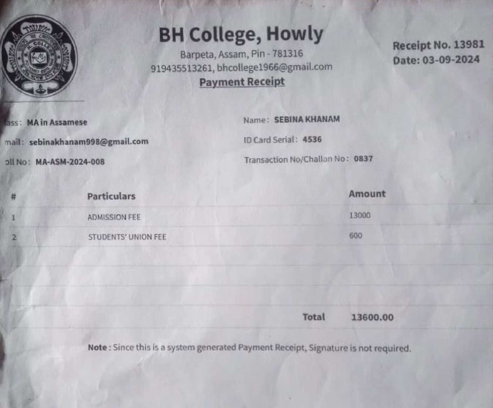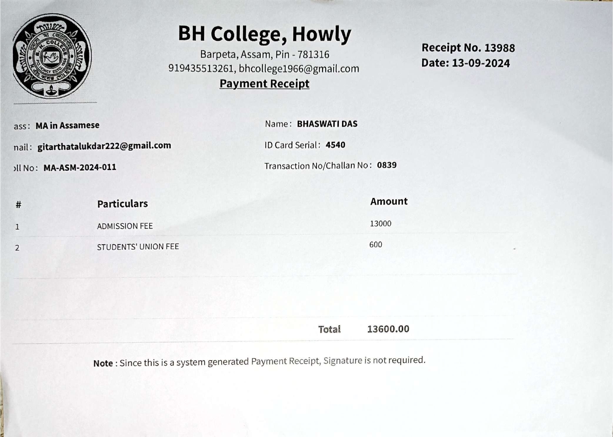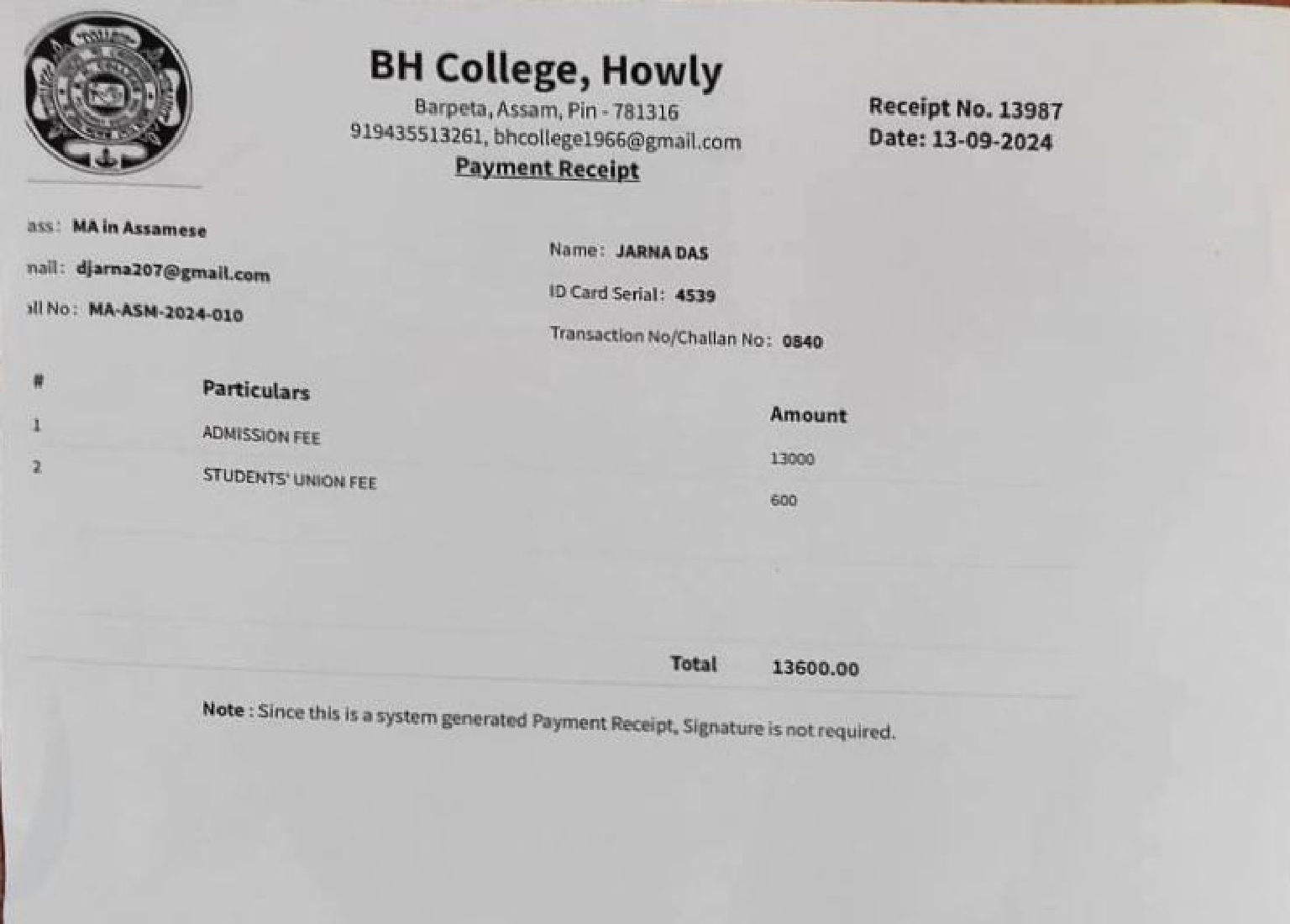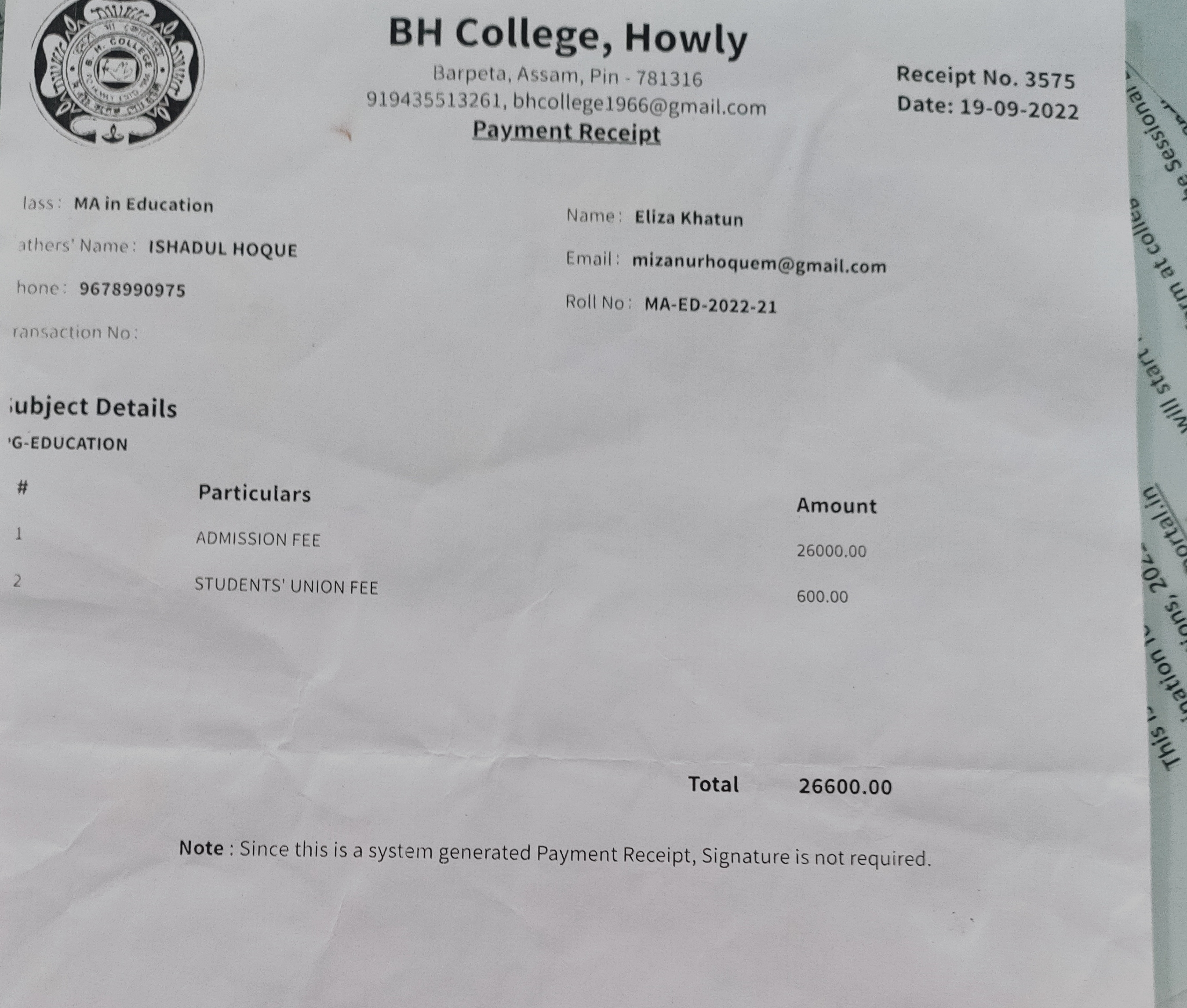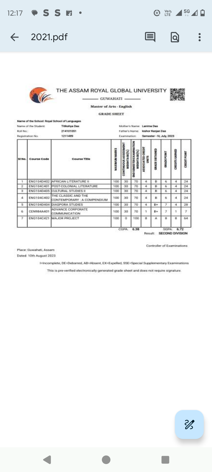 44 | MATHEMATICS | 2023 | Asifa Ahmed | B. Sc. Mathematics | 2023 | Gauhati University | M. Sc. | View File |