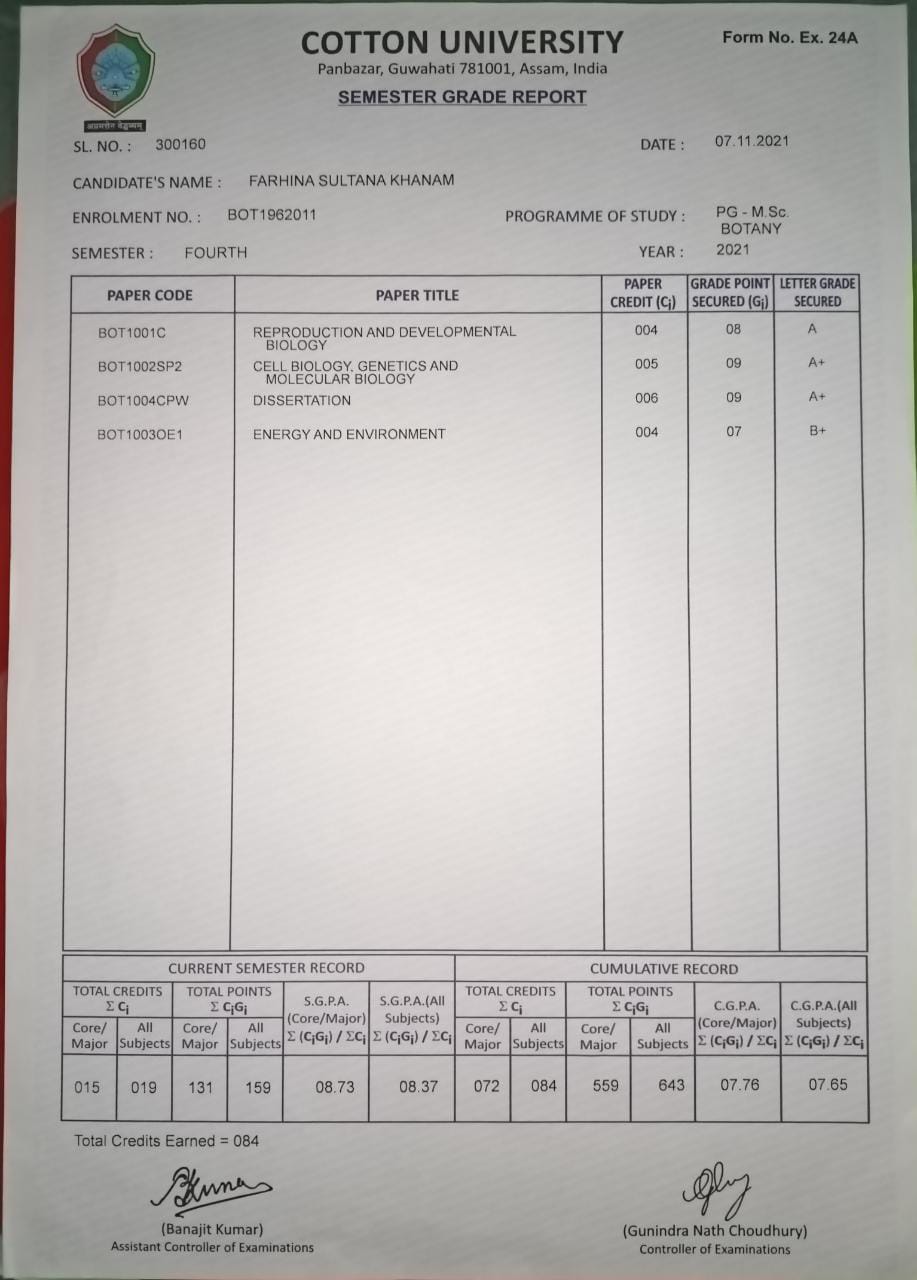 751 | BOTANY | 2019 | Farhina Sultana Khanom | Botany | 2019 | Cotton University | M.Sc in Botany | View File |