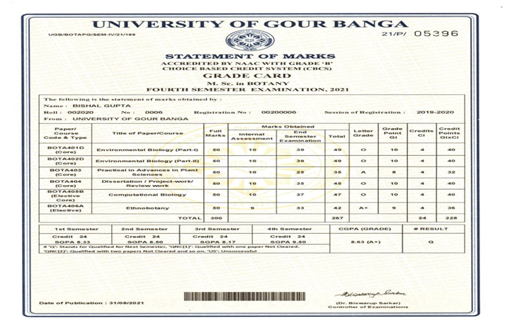 747 | BOTANY | 2019 | Bishal Gupta | Botany | 2019 | Gourbanga University | M.Sc in Botany | View File |