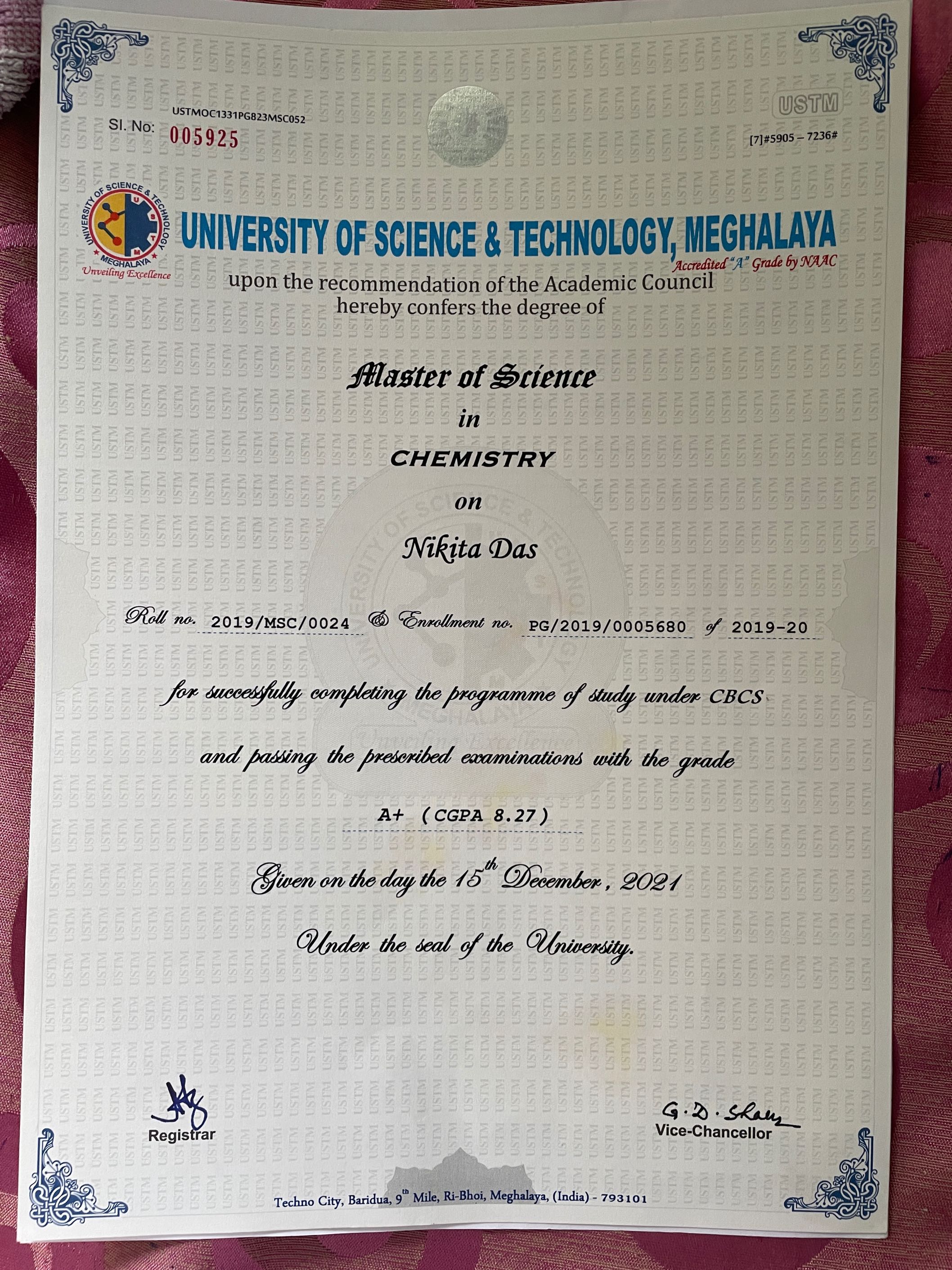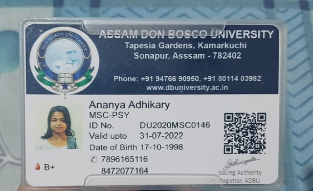 738 | BOTANY | 2020 | Ananya Adhikary | Botany | 2020 | Assam Don Bosco University | M.Sc in Councelling Psychology | View File |