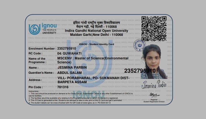 734 | BOTANY | 2022 | Jesmina Parbin | Botany | 2022 | IGNOU, Guwahati | M.Sc in Environmental Science | View File |