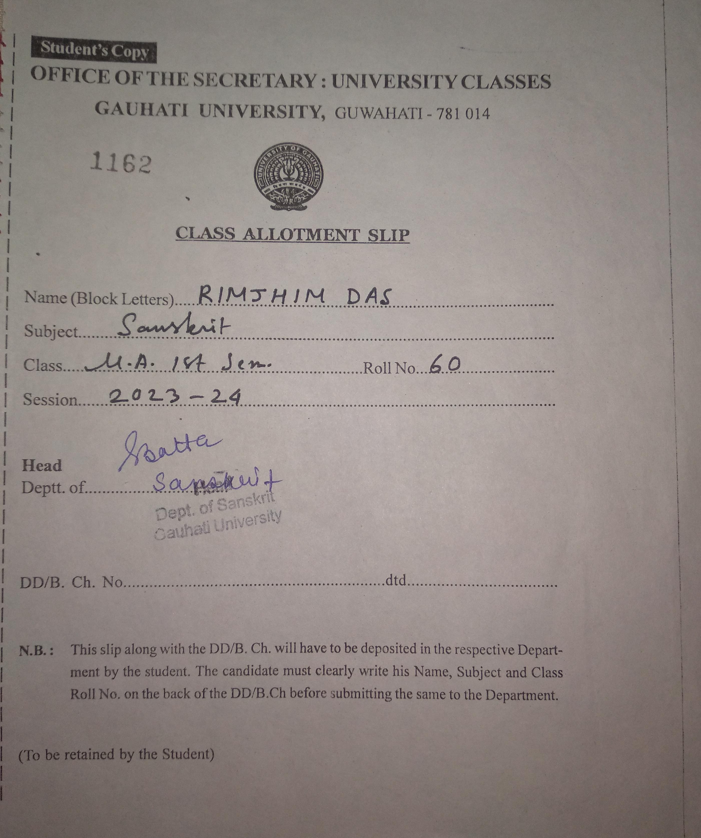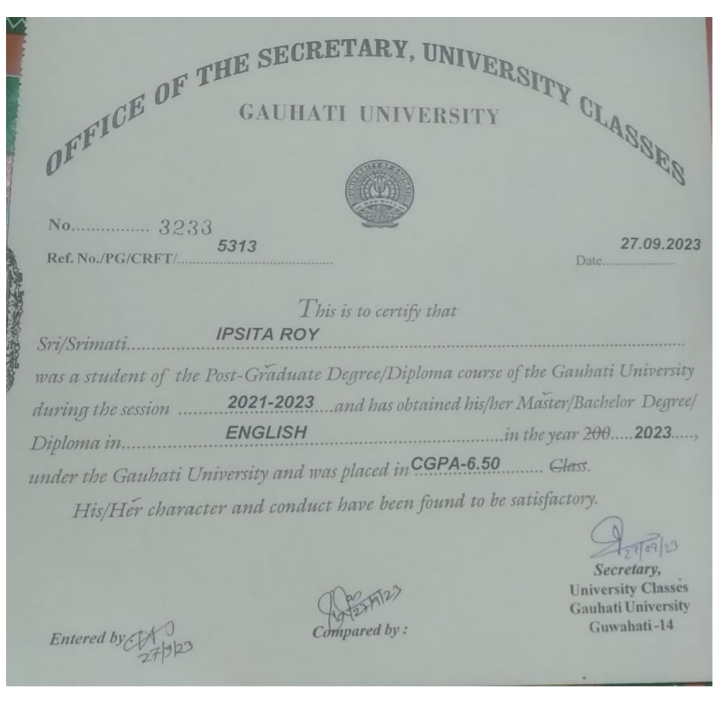 717 | SANSKRIT | 2023 | Rimjhim Das | Sanskrit | 2023 | Gauhati University | M.A in Sanskrit | View File |