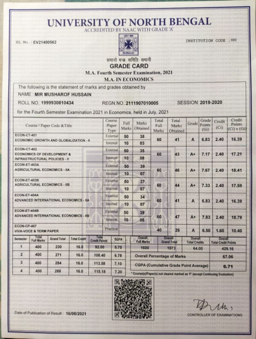 707 | ECONOMICS | 2019 | Musharof Hussain | B.A (Economics) | 2019 | University of North Bengal | PG (Economics) | View File |