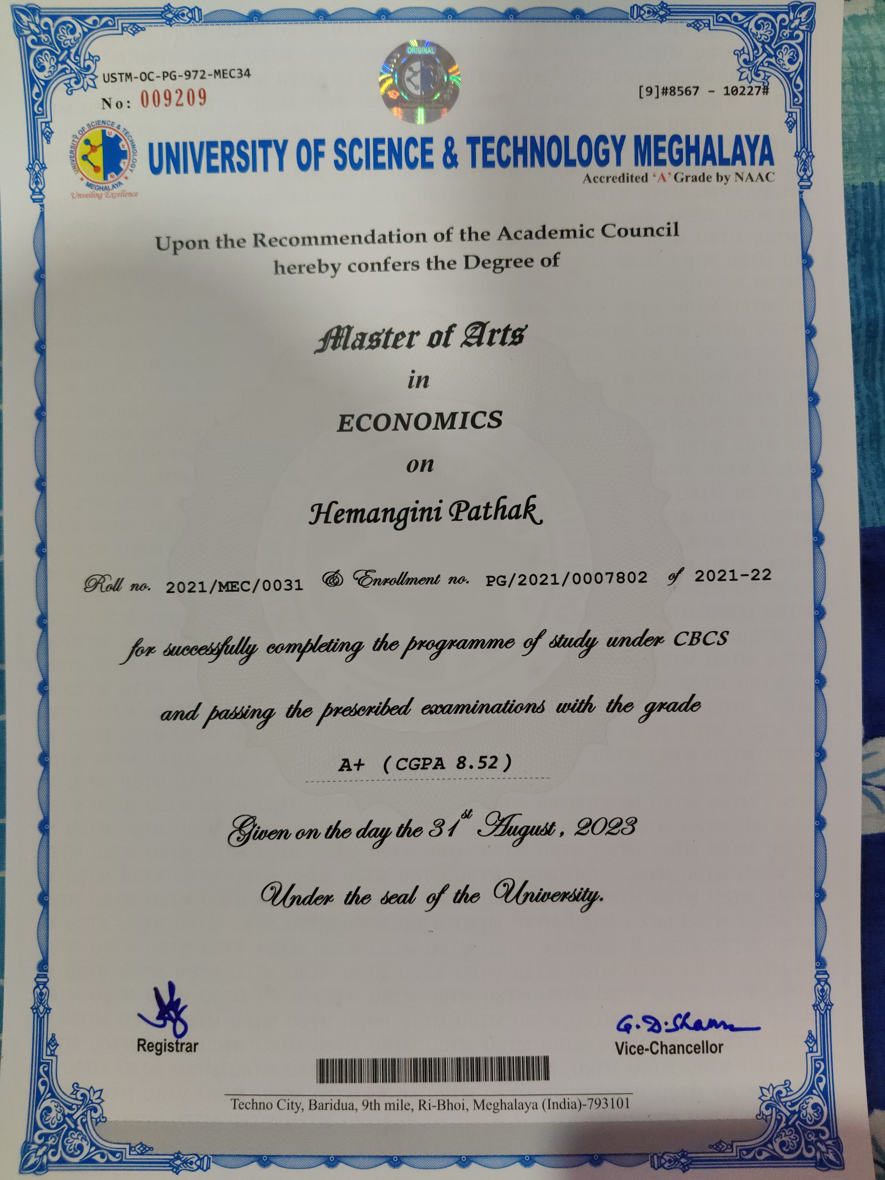 710 | ECONOMICS | 2019 | Nilam Das | B.A (Economics) | 2019 | Cotton University | PG (Economics) | View File |