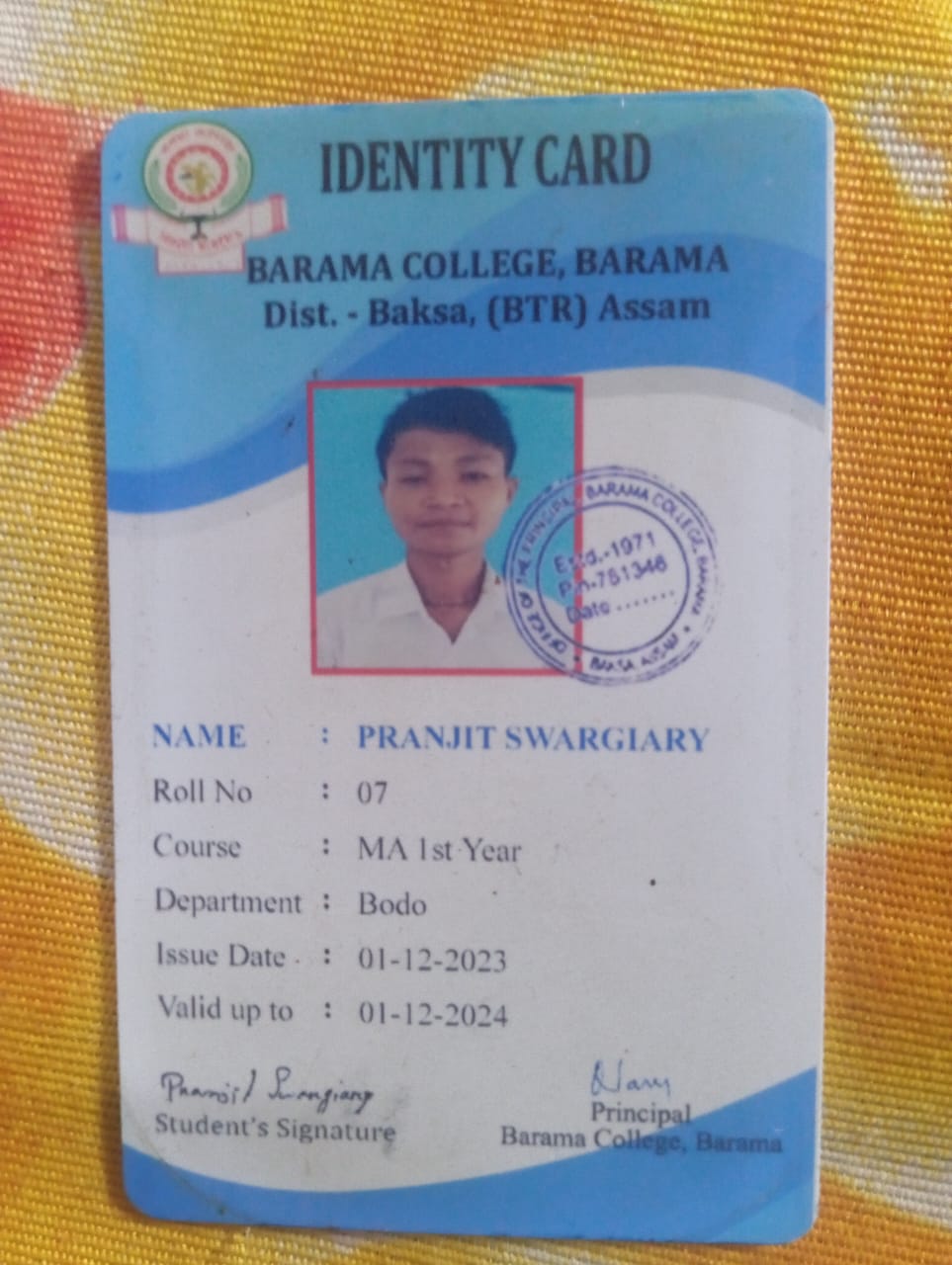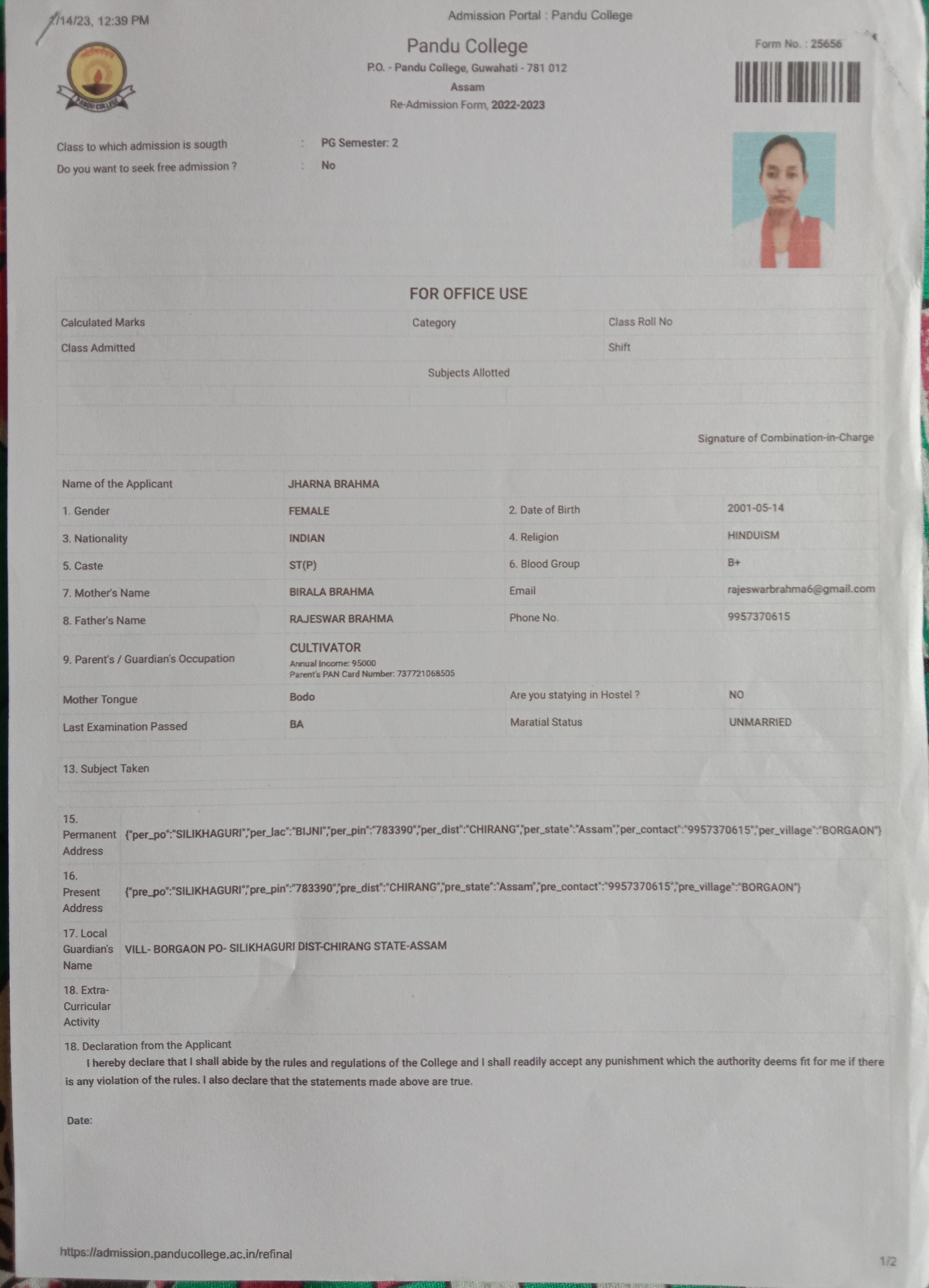 786 | POLITICAL SCIENCE | 2021 | Dibyajyoti Basumatary | B. A in Political Science | 2021 | Gauhati University | LLB | View File |