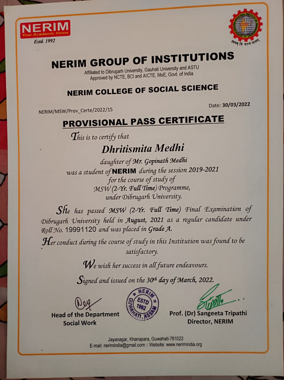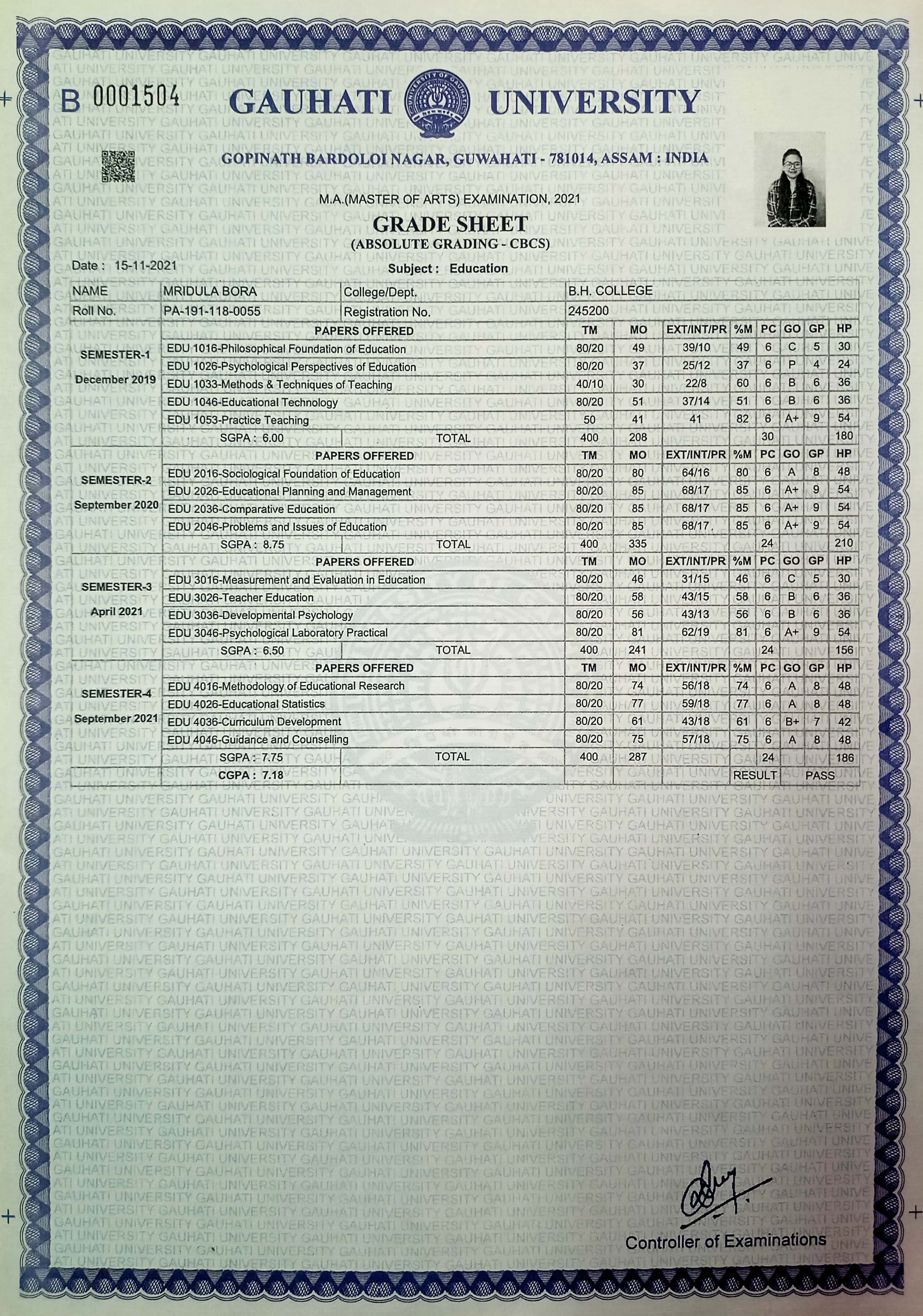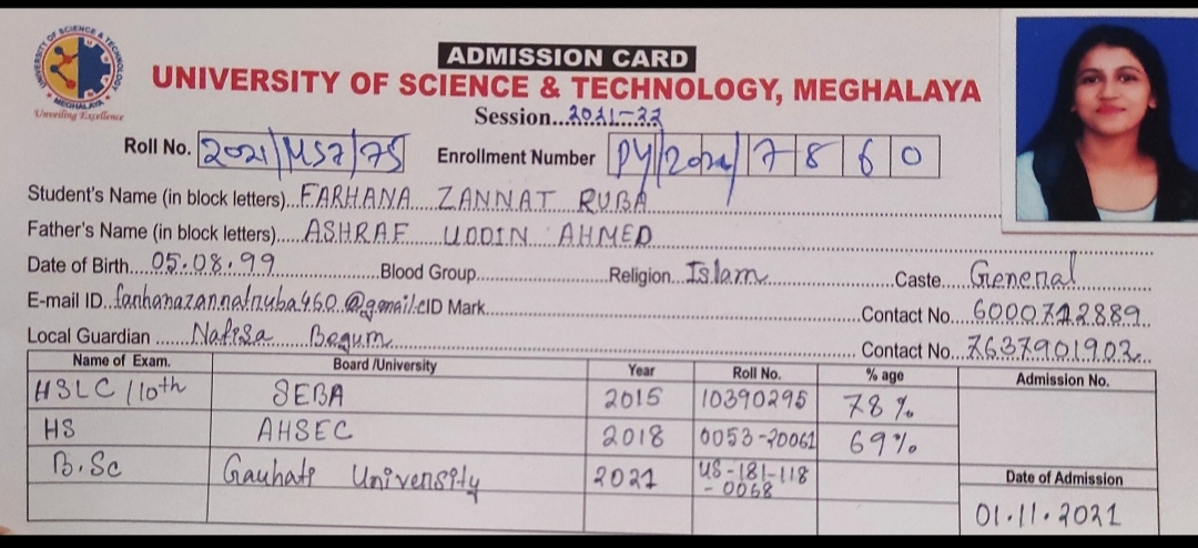 790 | POLITICAL SCIENCE | 2021 | Meghna Singha | B. A in Political Science | 2020 | Gauhati University | LLB | View File |