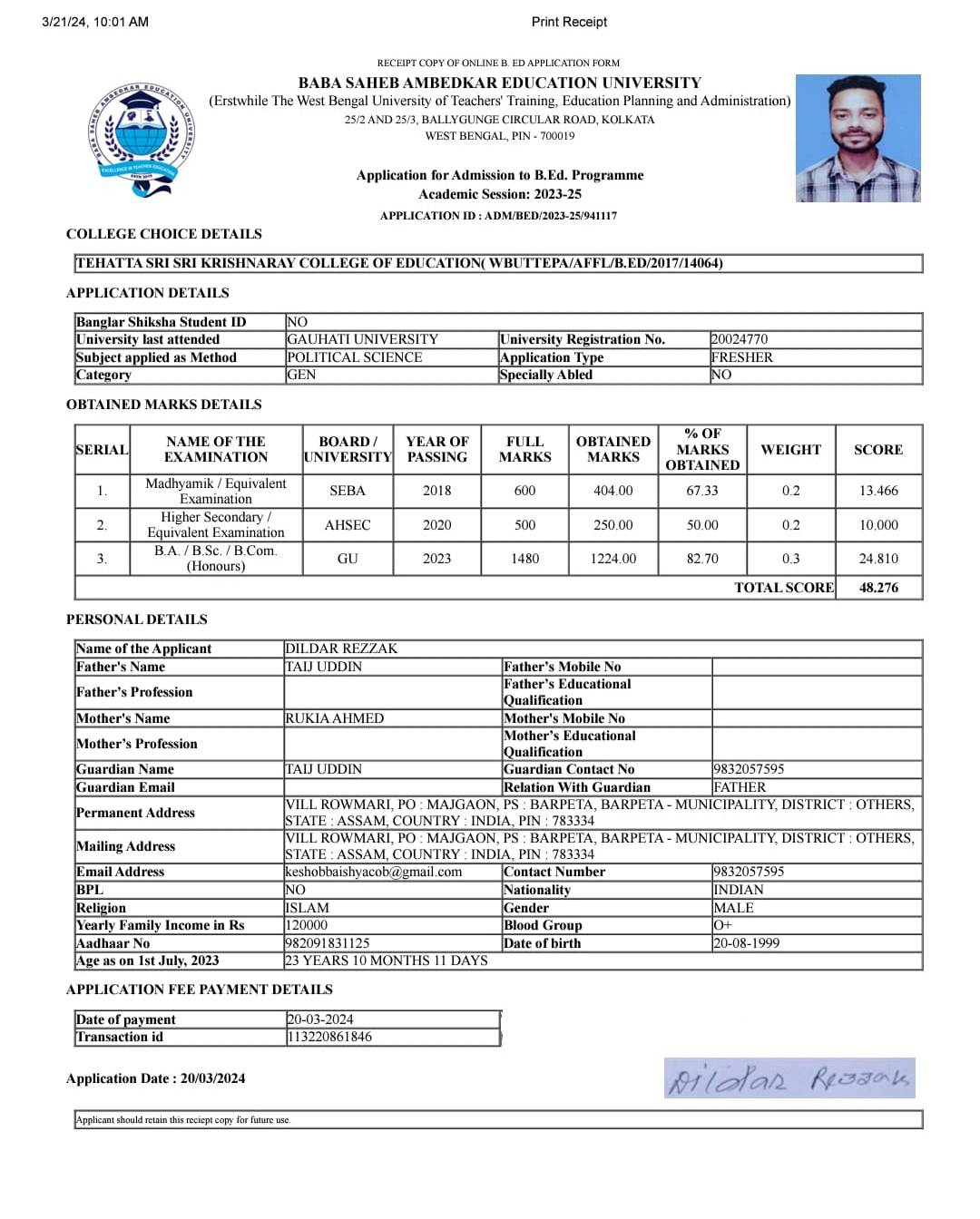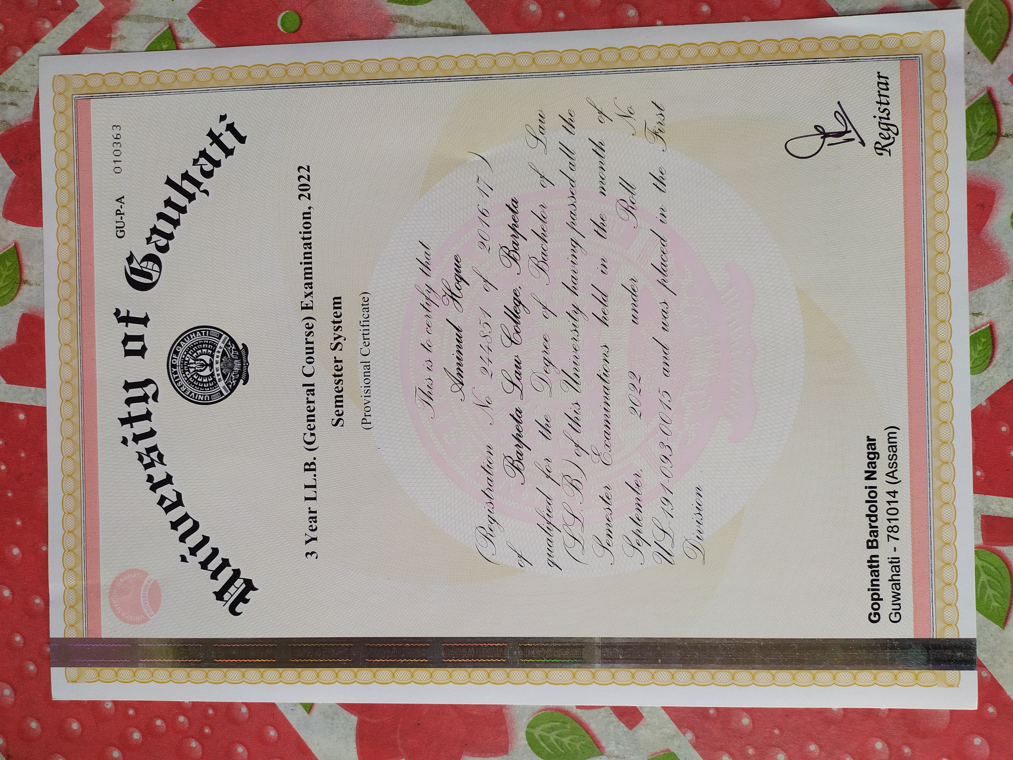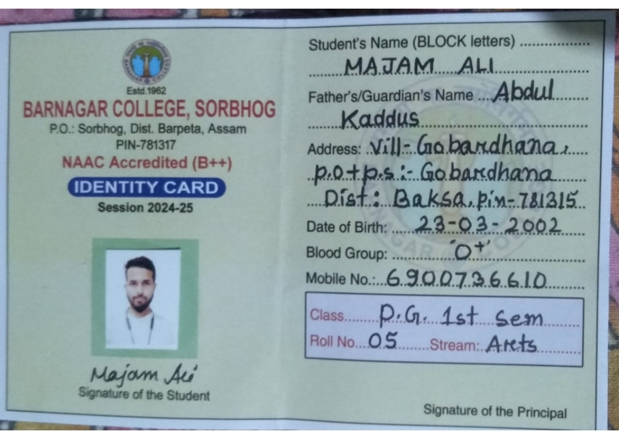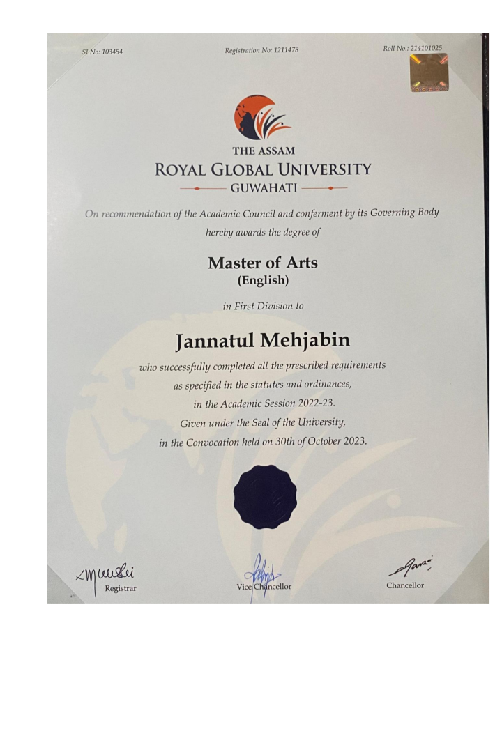 773 | POLITICAL SCIENCE | 2023 | Zahangir Alam | B. A in Political Science | 2023 | Govt. Law College, Guwahati | LLB | View File |