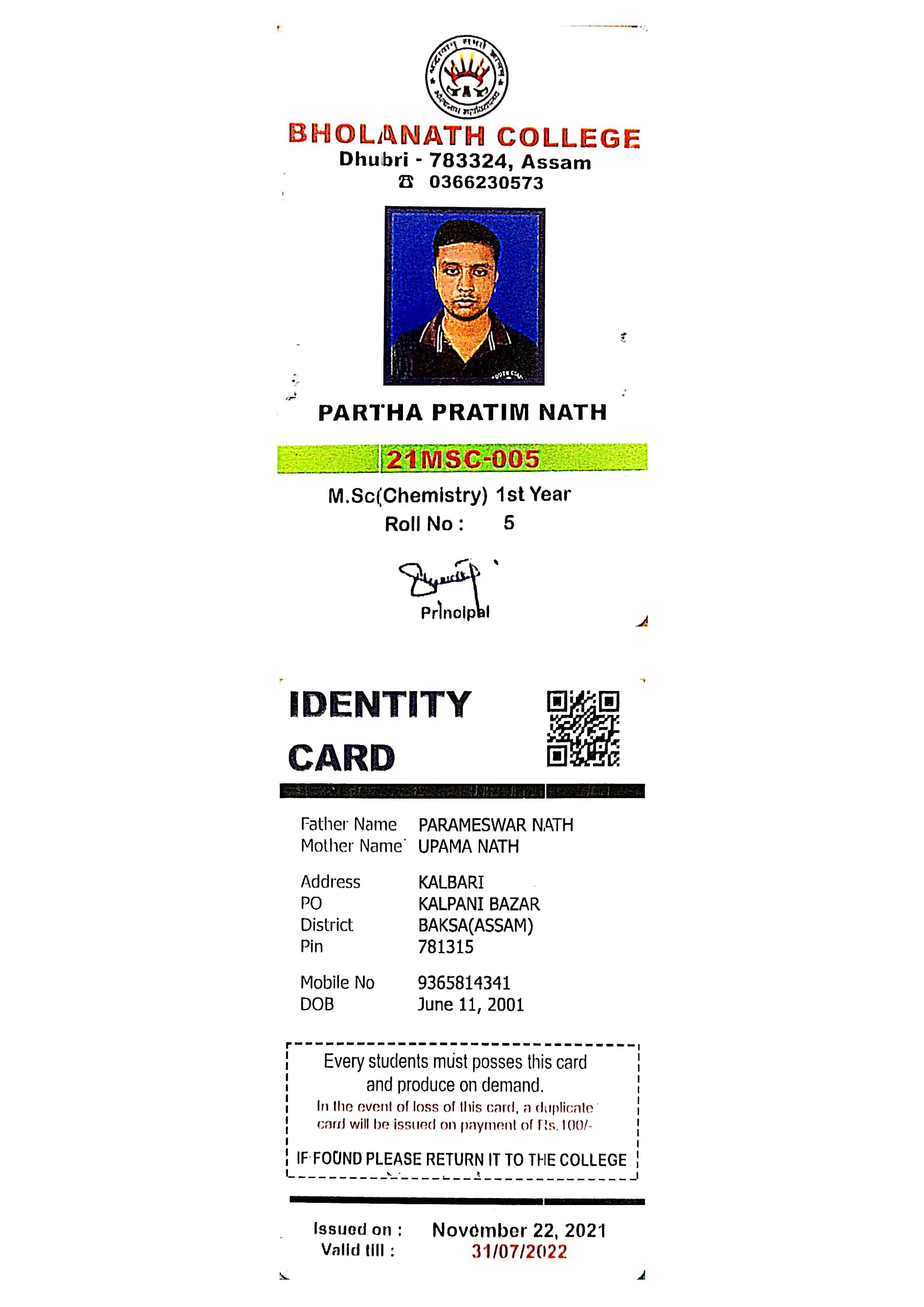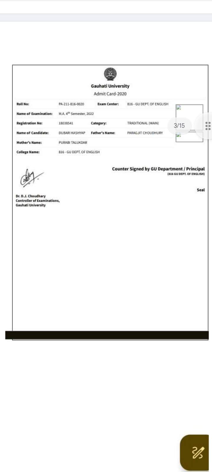 736 | BOTANY | 2021 | Dhyandeep Nath | Botany | 2021 | B. Borooah College, Guwahati | M.Sc in Botany | View File |