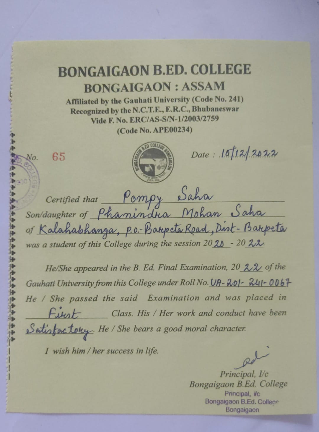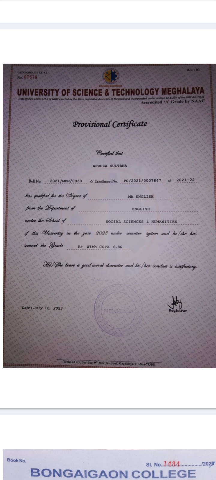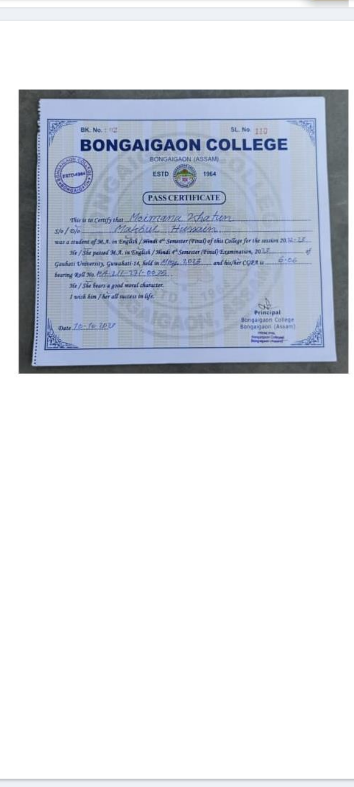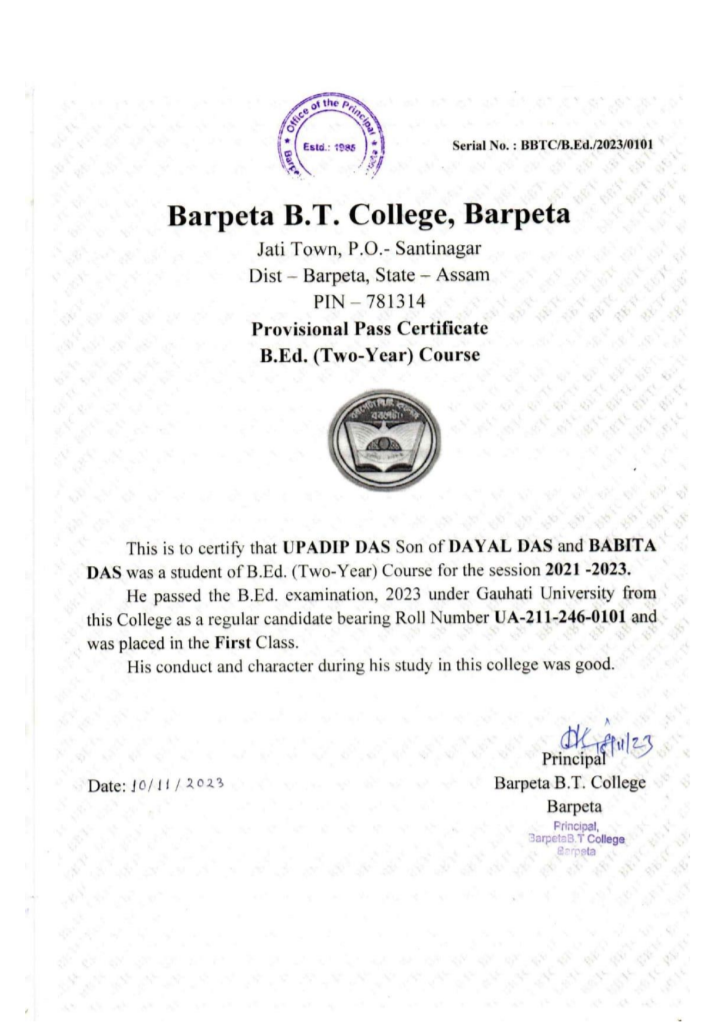 775 | POLITICAL SCIENCE | 2023 | Bhrigu Basumatary | B. A in Political Science | 2022 | Bajali T. T. College | B.Ed | View File |