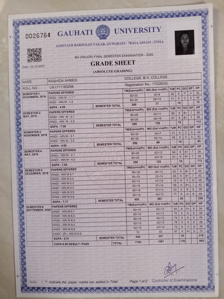 803 | POLITICAL SCIENCE | 2019 | HIYASHRI CHOUDHARY | B. A in Political Science | 2019 | Gauhati University | LLB | View File |