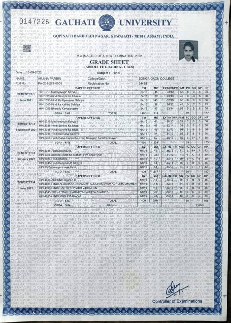 799 | POLITICAL SCIENCE | 2022 | Anjima Basumatary | B.A in Political Science | 2022 | Paschim Guwahati Mahavidyalaya | M. A. in Political Science | View File |