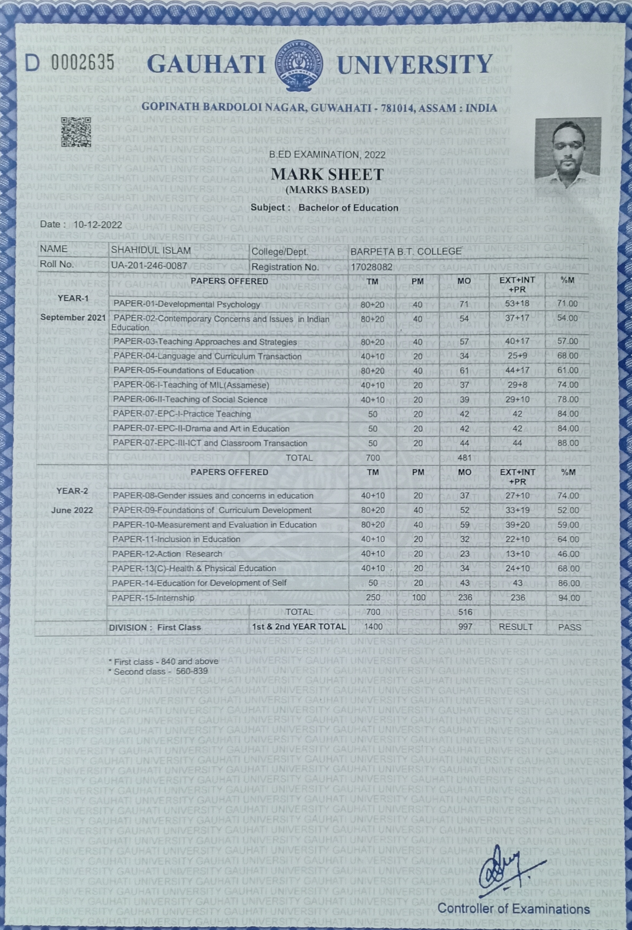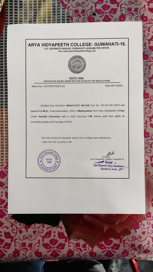 51 | MATHEMATICS | 2022 | Riliyas Islam | B. Sc. Mathematics | 2022 | Arya Vidyapeeth College, Guwahati | M. Sc. | View File |