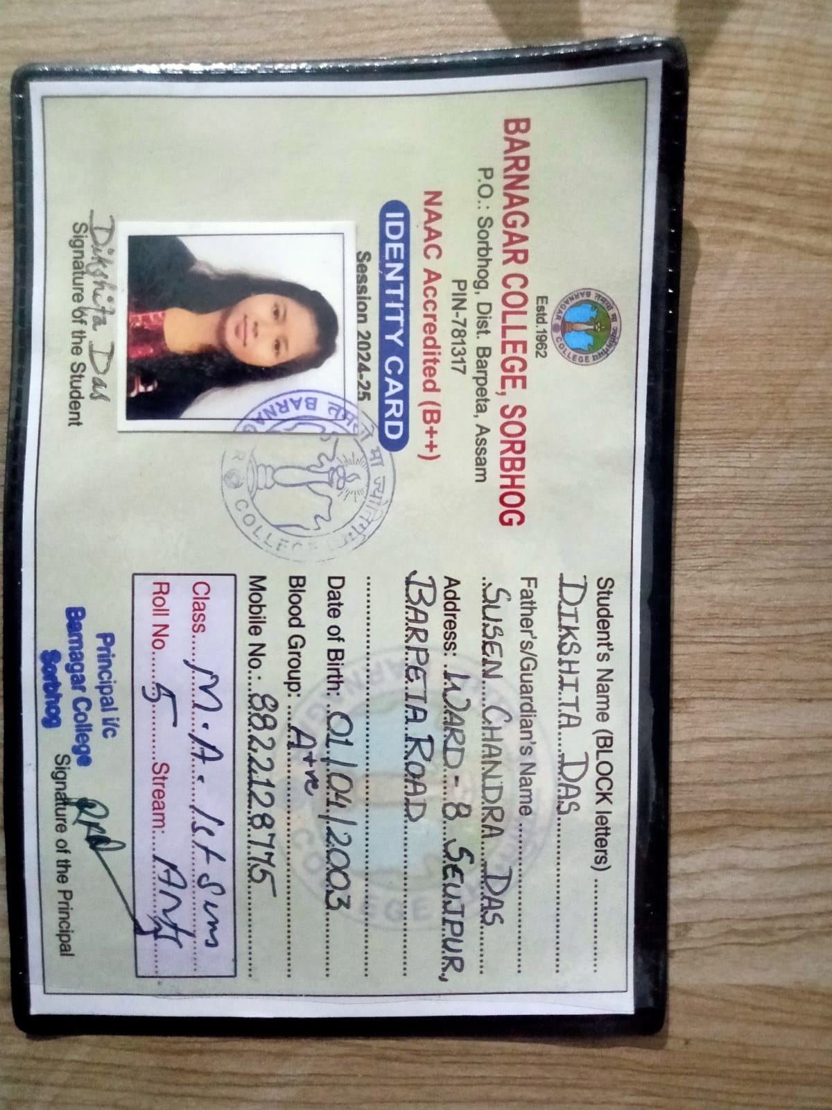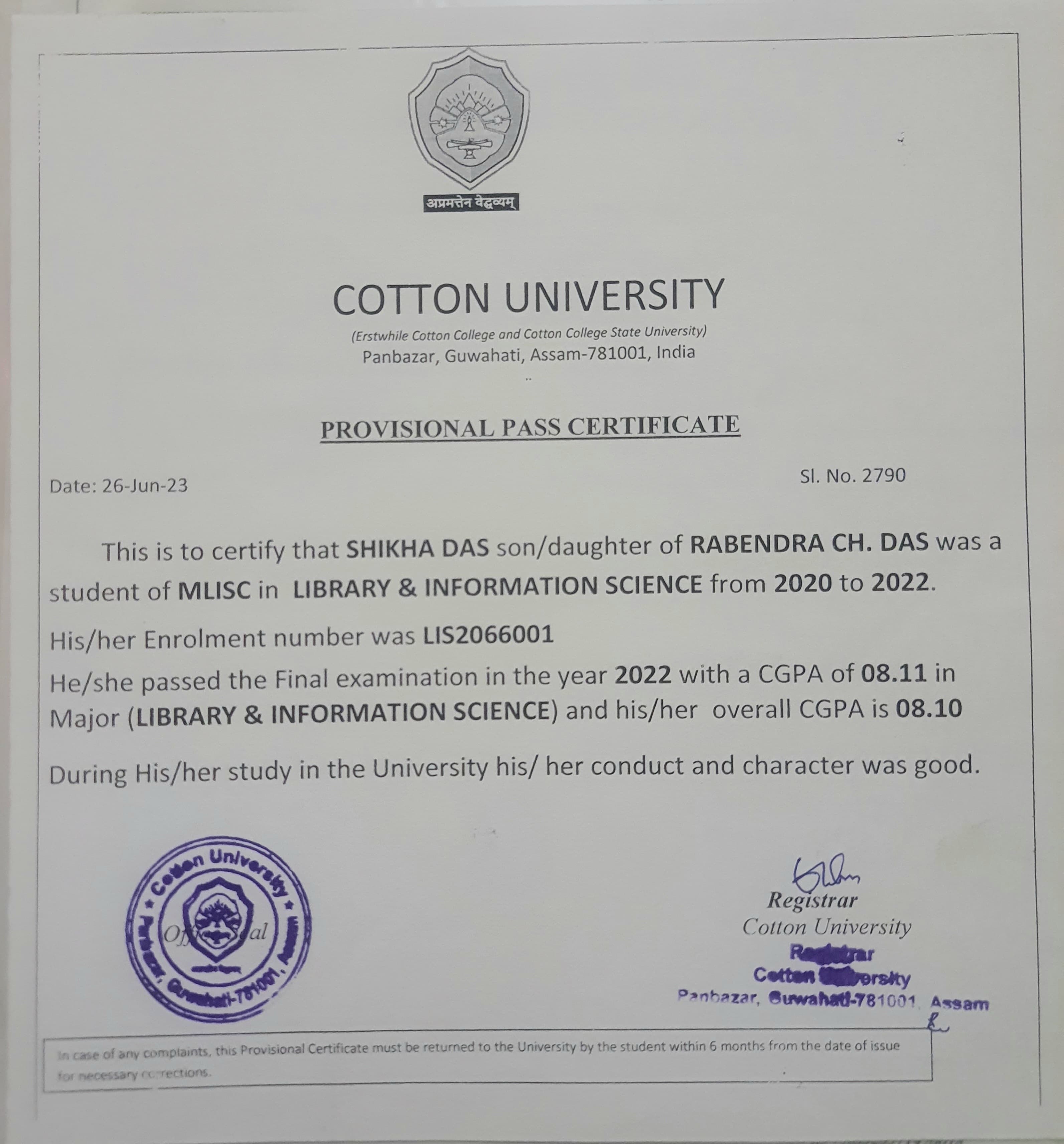 787 | POLITICAL SCIENCE | 2021 | Dhritideep das | B. A in Political Science | 2021 | Gauhati University | LLB | View File |
