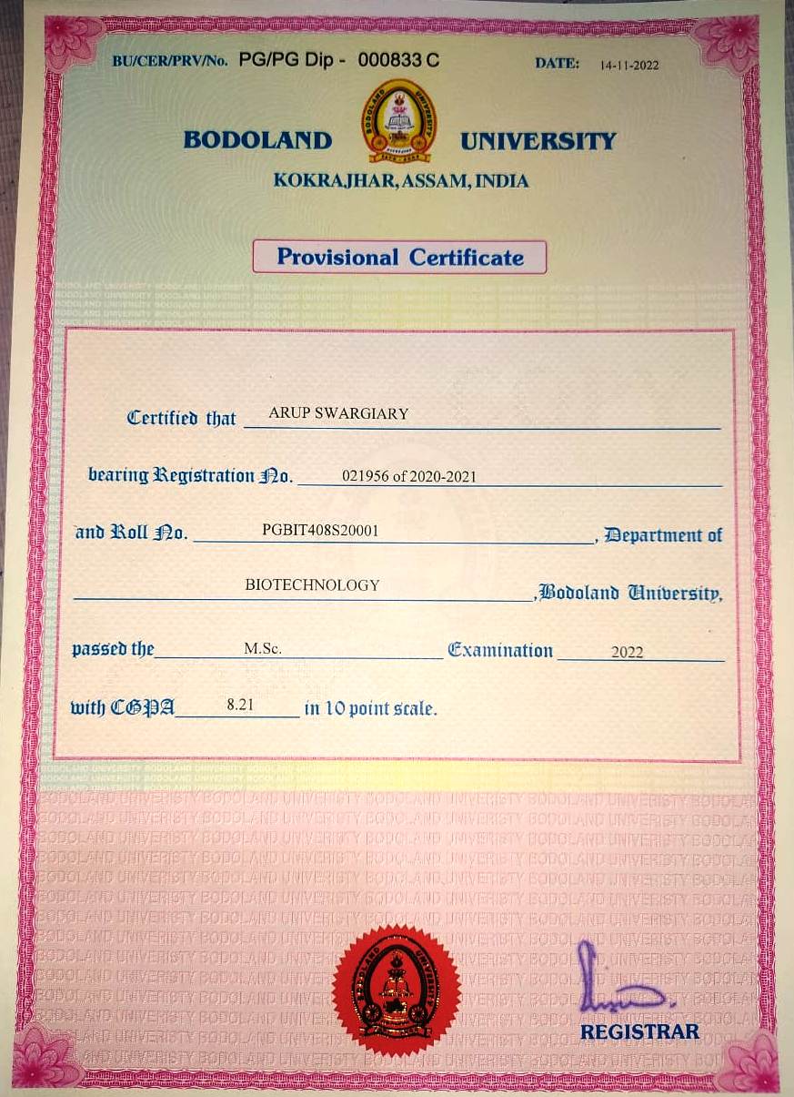 729 | BOTANY | 2022 | Diju Choudhury | Botany | 2022 | Kanoi College, Dibrugarh University | M.Sc in Life Science (Botany) | View File |