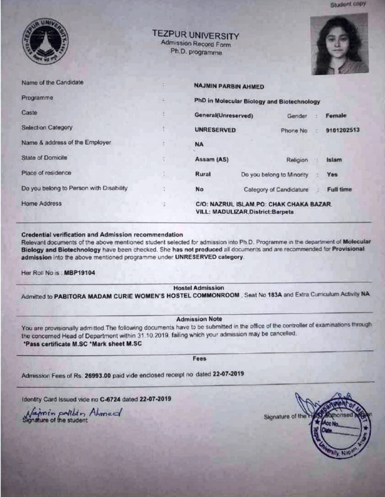 750 | BOTANY | 2019 | Sahil Uddin | Botany | 2019 | M.C. College, Barpeta under Gauhati University | M.Sc in Botany | View File |