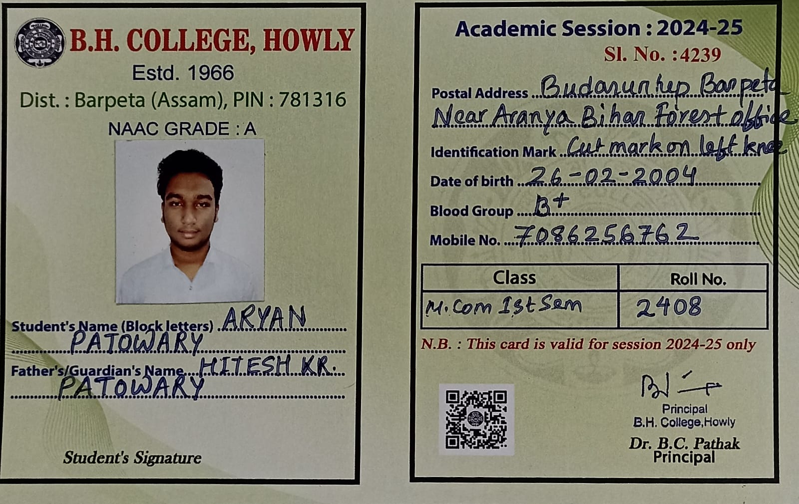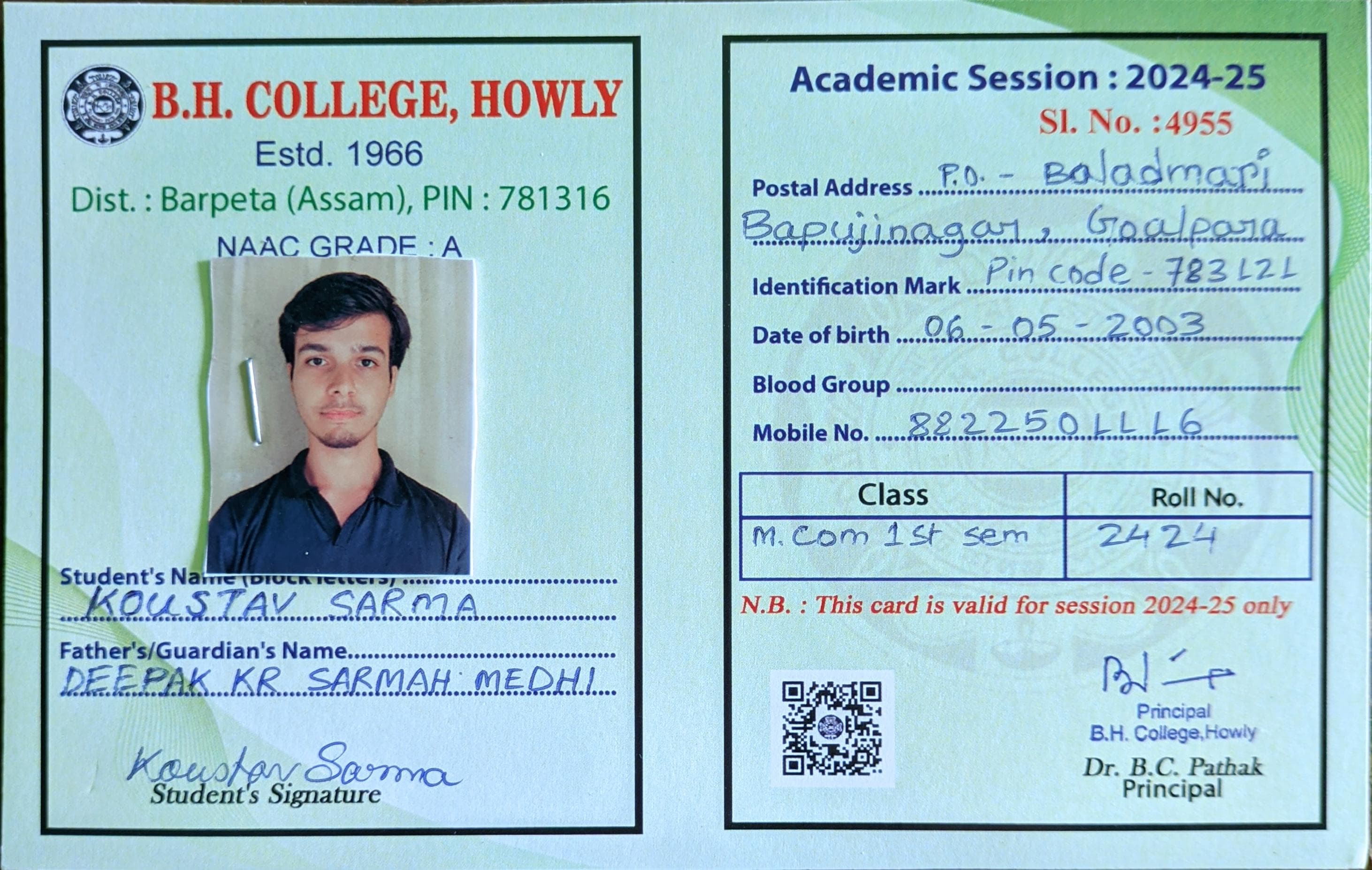 22 | MATHEMATICS | 2024 | Prasenjit Barman | B. Sc. Mathematics | 2024 | Gauhati University | M. Sc. | View File |