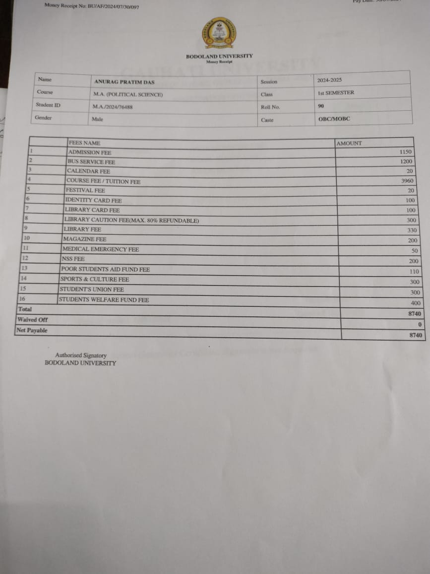 774 | POLITICAL SCIENCE | 2022 | Bijit Gwra Basumatary | B. A in Political Science | 2022 | Gauhati University | Master of Arts in Political Science | View File |