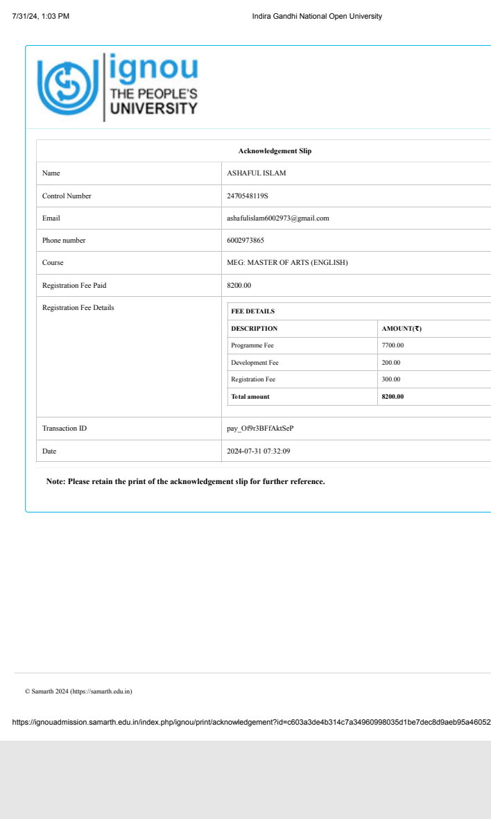 769 | SANSKRIT | 2021 | Himashri Das | Sanskrit | 2021 | IGNOU | M.A in Sanskrit | View File |