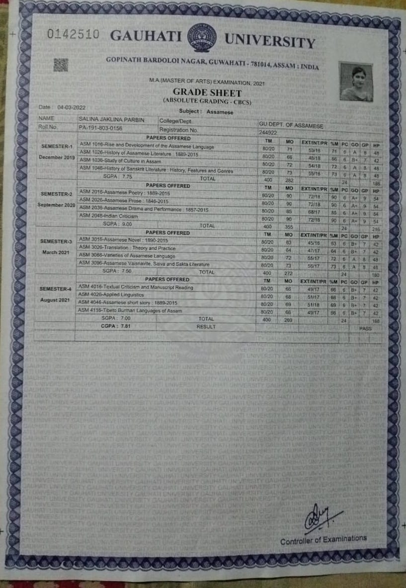 762 | SANSKRIT | 2022 | Jupitara Sarma | Sanskrit | 2022 | Gauhati University | M.A in Sanskrit | View File |