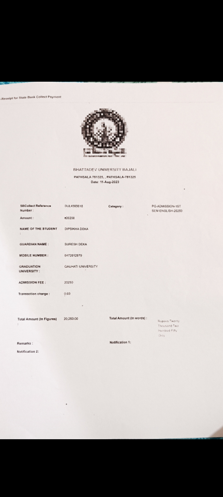 770 | SANSKRIT | 2021 | Bhanushri Das | Sanskrit | 2021 | Gauhati University | M.A in Sanskrit | View File |