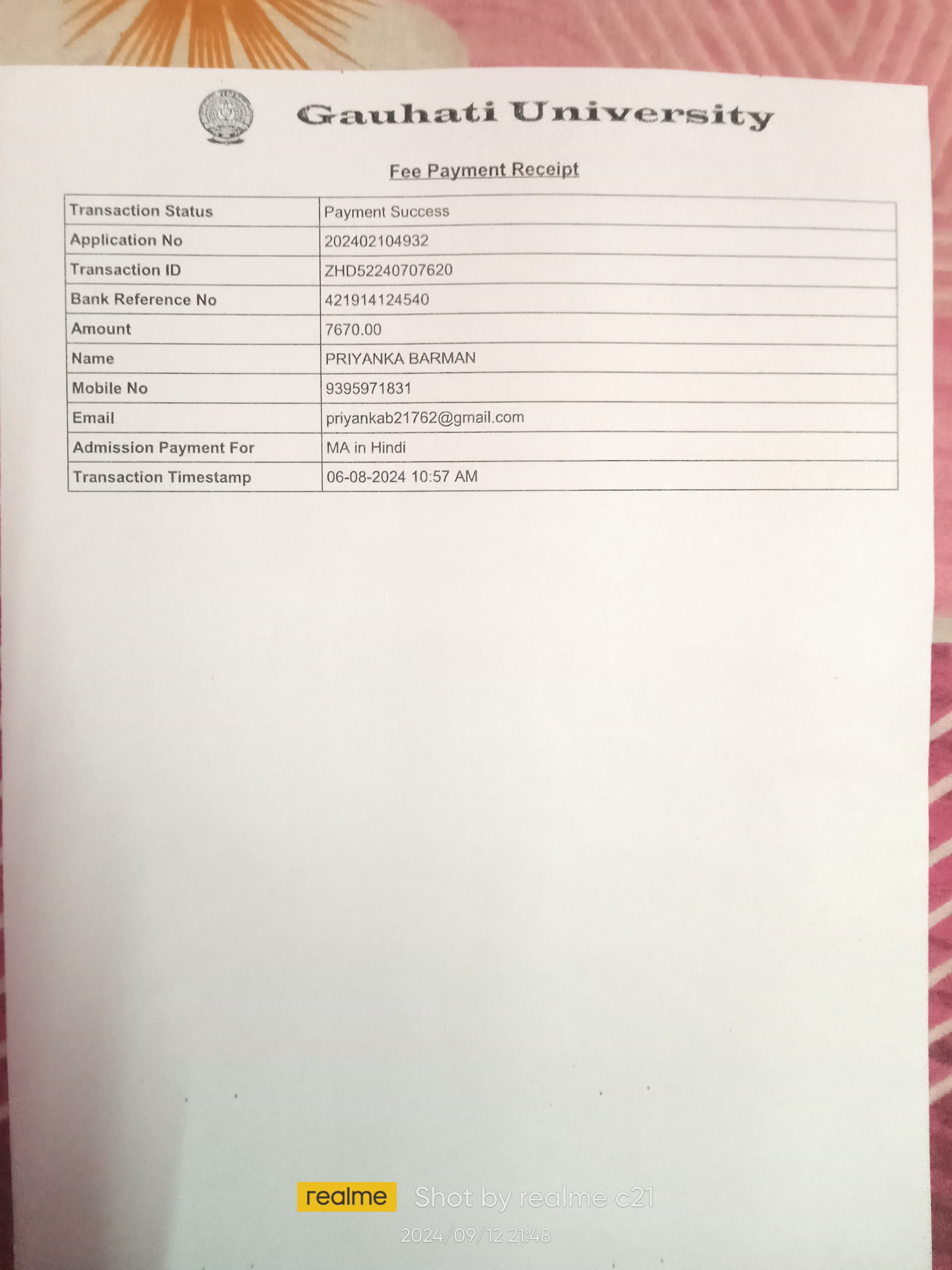 92 | MATHEMATICS | 2021 | Manoj Prasad | B. Sc. Mathematics | 2021 | Arya Vidyapeeth College, Guwahati | M. Sc. | View File |