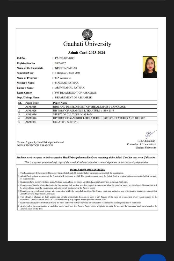 718 | SANSKRIT | 2023 | Nimisha Devi | Sanskrit | 2023 | Gauhati University | M.A in Sanskrit | View File |