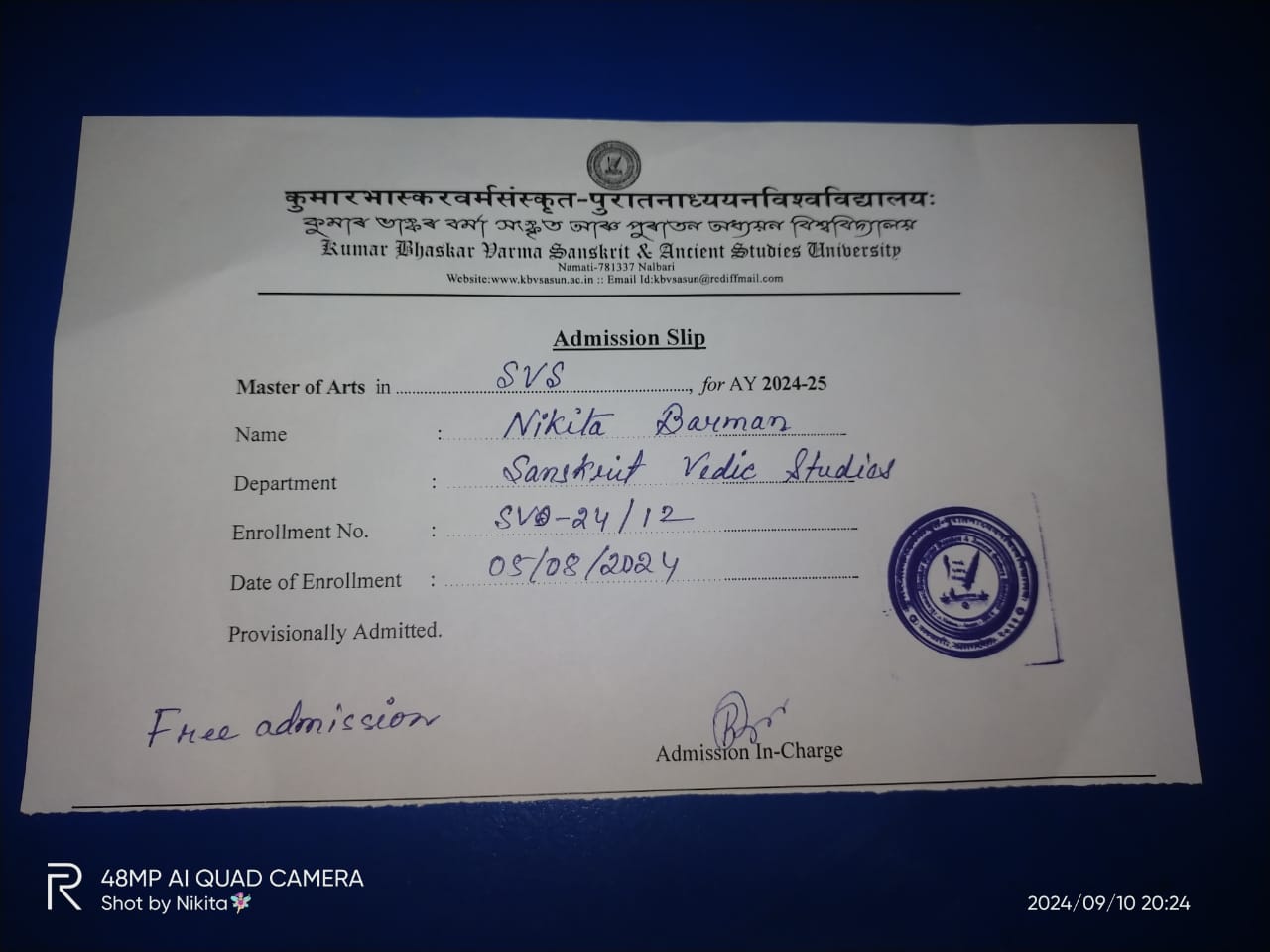 714 | SANSKRIT | 2023 | Nirmali Talukdar | Sanskrit | 2023 | KBVSASU, Nalbari | M.A in Sanskrit | View File |