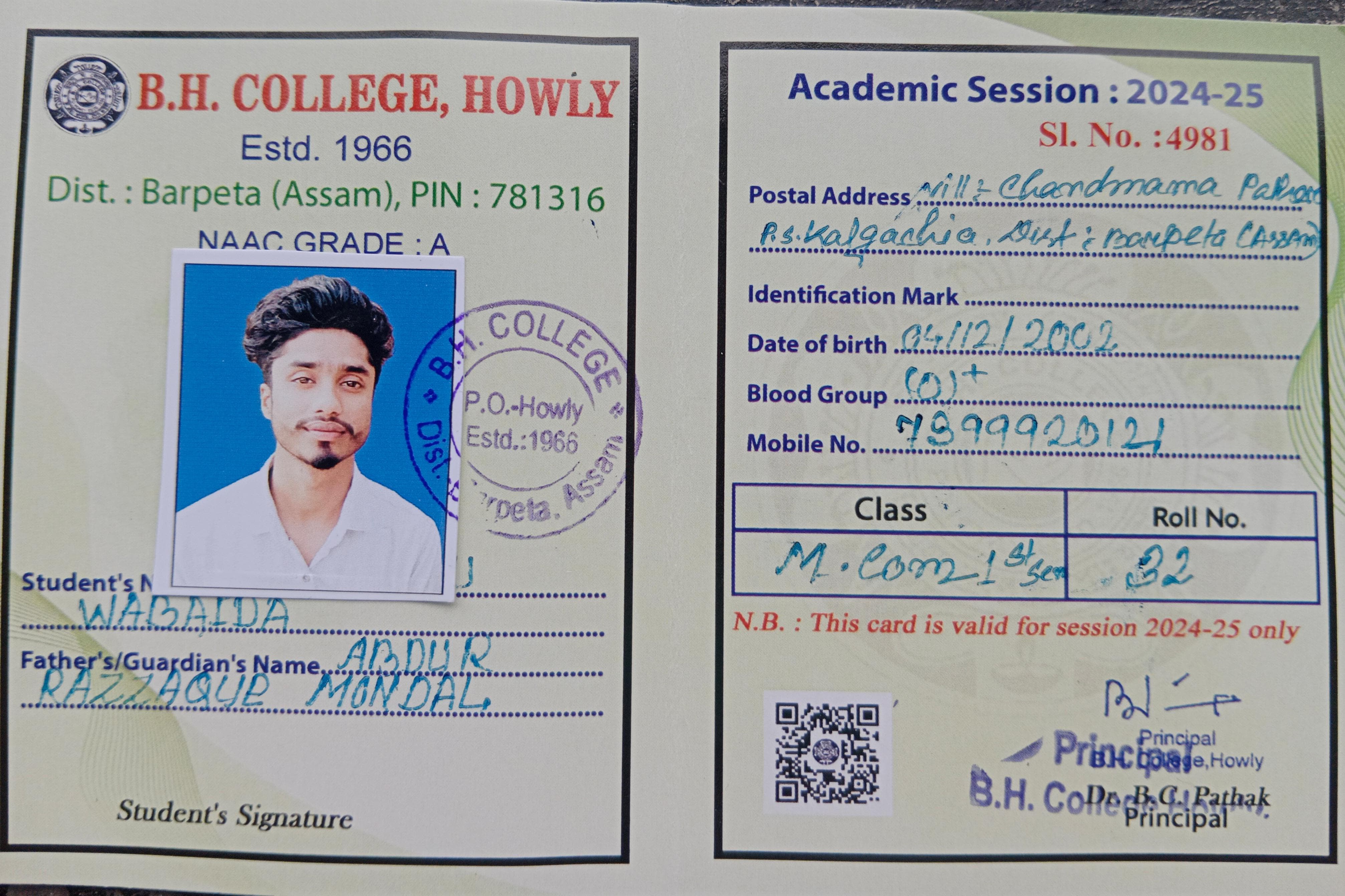 8 | MATHEMATICS | 2024 | Akkas Ali | B. Sc. Mathematics | 2024 | Bhattadev University | M. Sc. | View File |