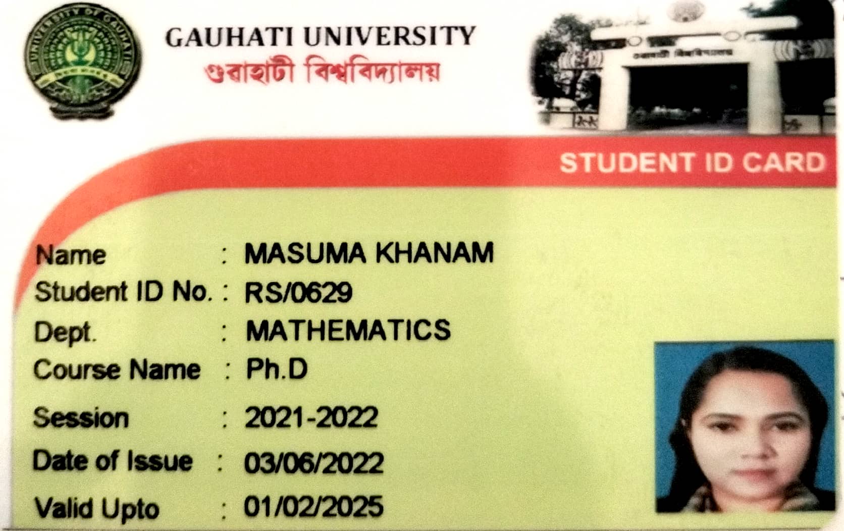 62 | MATHEMATICS | 2022 | Gunopam Khataniar | B. Sc. Mathematics | 2022 | Bhattadev University | M. Sc. | View File |