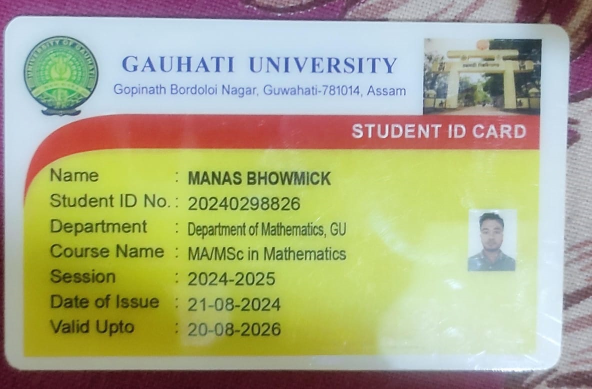23 | MATHEMATICS | 2024 | Manash Bhowmick | B. Sc. Mathematics | 2024 | Gauhati University | M. Sc. | View File |